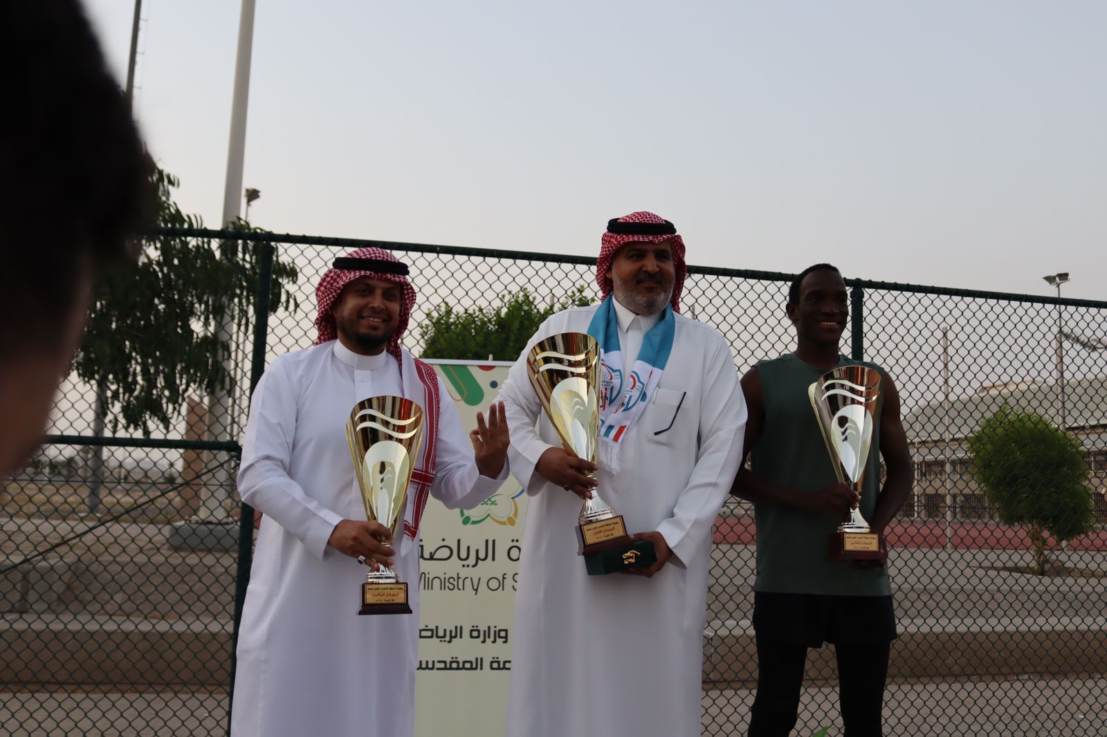 وتسلم لاعبو نادي جدة للصم كأس المركز الأول من رئيس الاتحاد الدكتور سعيد القحطاني، الذي توج أصحاب المراكز الأولى في البطولة بحضور نائب مدير مكتب وزارة الرياضة بالعاصمة المقدسة الأستاذ سليمان الشريف، ونائب مدير مدينة الملك عبدالعزيز الرياضية الأستاذ سلطان منير العبور، والمدير التنفيذي للاتحاد الأستاذ عبد الله العيسى، ورؤساء الأندية والمراكز.
