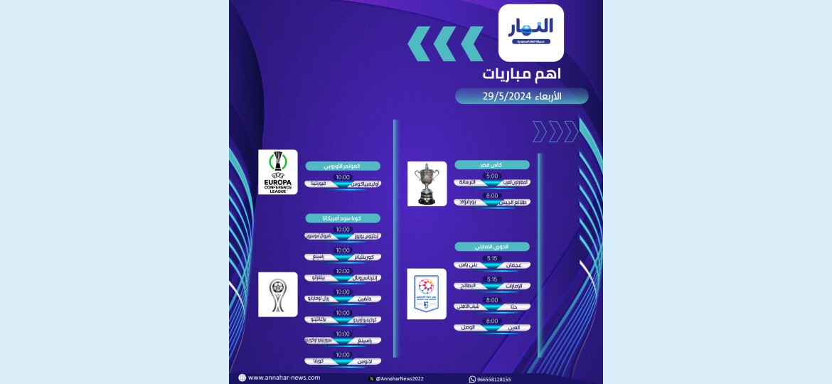 يحرص عشاق ومحبو كرة القدم على معرفة جدول مواعيد مباريات يوم غدًا الأربعاء 29 مايو 2024م، في مختلف دوريات العالم، حيث تشهد العديد من المباريات في الدوريات العالمية والعربية، وبطولات الكؤوس القارية والمحلية.