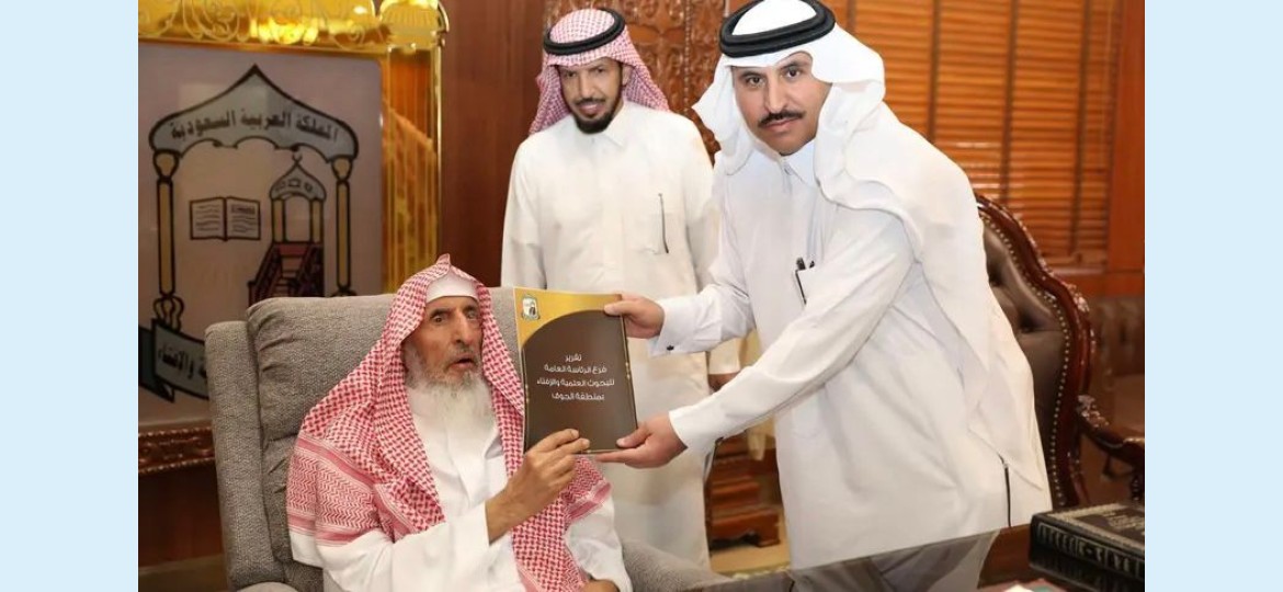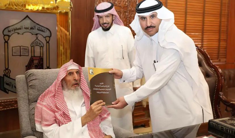 استقبل سماحة مفتي عام المملكة رئيس هيئة كبار العلماء والرئيس العام للبحوث العلمية والإفتاء الشيخ عبدالعزيز بن عبدالله بن محمد آل الشيخ في مكتب سماحته، مدير عام فرع الرئاسة العامة للبحوث العلمية والإفتاء بمنطقة الجوف مفرح الرويلي، الذي سلّم لسماحته التقرير الختامي للفرع لعام 2023.