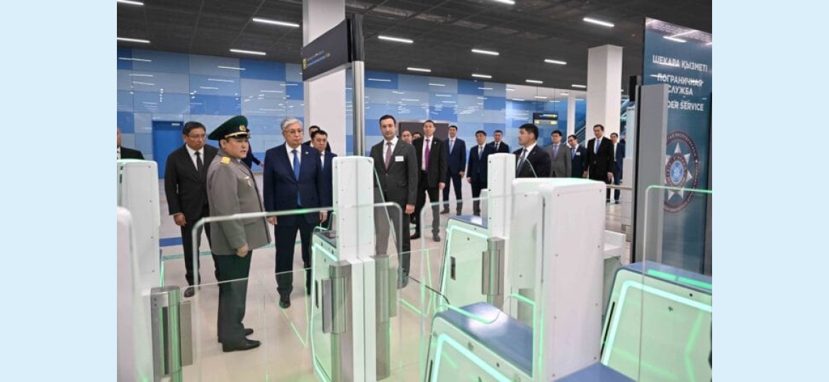زار الرئيس الكازاخستاني، قاسم جومارت توكاييف، المحطة الدولية الجديدة بمطار ألماتي في 31 مايو خلال رحلة عمل إلى المدينة.