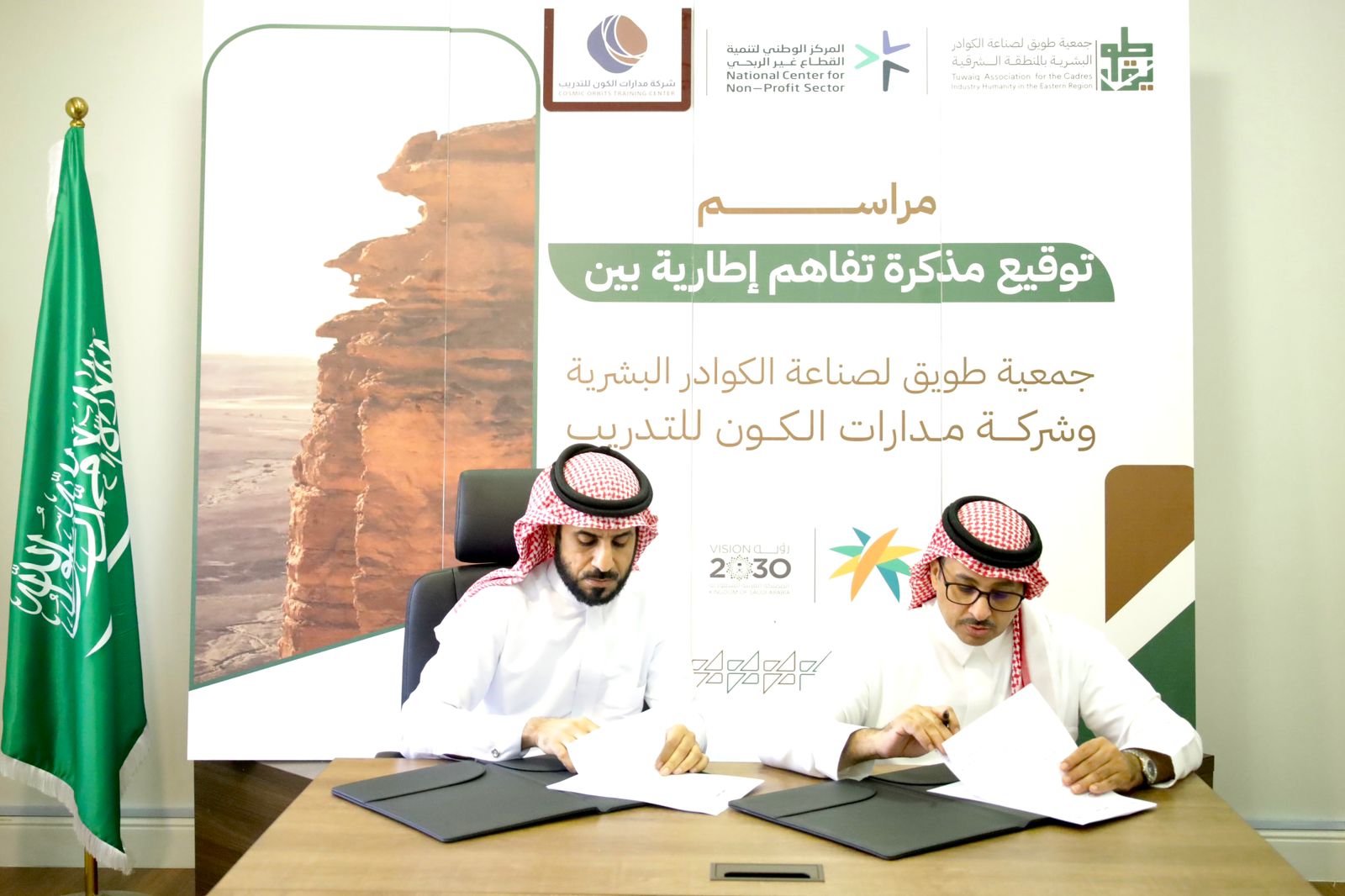 وقعت جمعية "طويق" للموارد البشرية بالمنطقة الشرقية مذكرة تفاهم إطارية مع شركة مدارات الكون للتدريب وذلك لتدريب 1000 متدرب من أبناء وبنات الوطن ، بهدف تمكينهم وتنمية قدراتهم البشرية إضافة إلى ضخ الكوادر الوطنية المؤهلة لسوق العمل تواكبا مع رؤية المملكة 2030 بما يساهم في دعم عجلة التنمية ورفع نســبة الاقتصاد في المخزون البشري ، وقد مثل الجمعية في الإتفاقية رئيس مجلس الإدارة خالد العبيد وعن الشركة الرئيس التنفيذي نايف الهاجري .