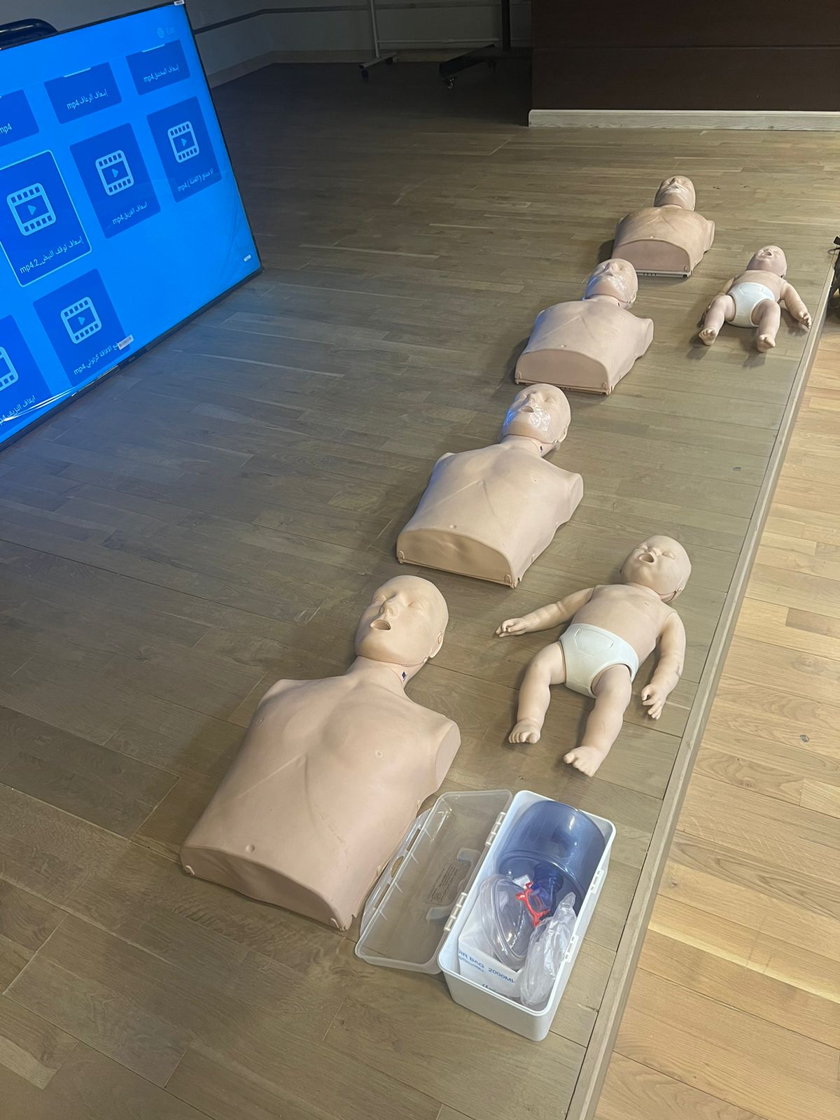 وتم تقديم التدريب للمتدربات والتطبيقات العملية وحقيبة برنامج الإسعافات الأولية حيث أقيمت في برج الخرج.
