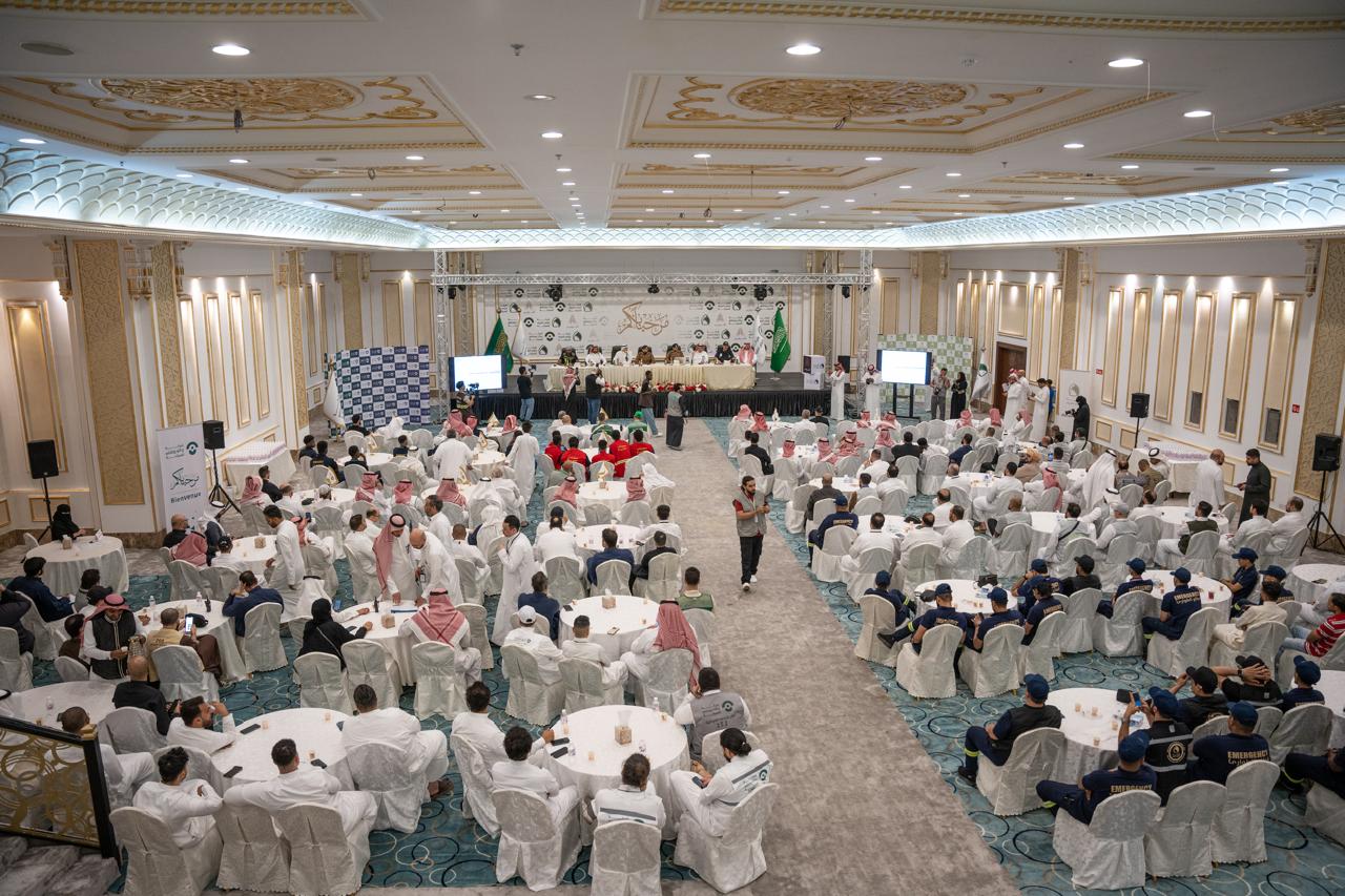 وقدم النقيب المهندس عبدالمجيد محمد قحل الورشة بحضور أعضاء أعضاء الطوارىء والسلامة في ذراعي الدول العربية ( رحلات ومنافع ) و ( إكرام الضيف )، شدد فيها على تأمين وسائل السلامة في مخيمات الحجاج.