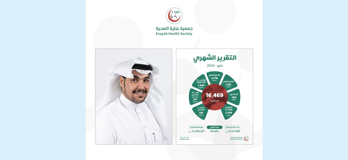 أصدرت جمعية عناية الصحية تقريرها لشهر مايو 2024م، حيث جاء حافلاً بالإنجازات، ويأتي هذا التقرير في إطار الحوكمة والشفافية التي تنتهجها الجمعية في إدارة التواصل وتعزيز الثقة مع أصحاب المصلحة.