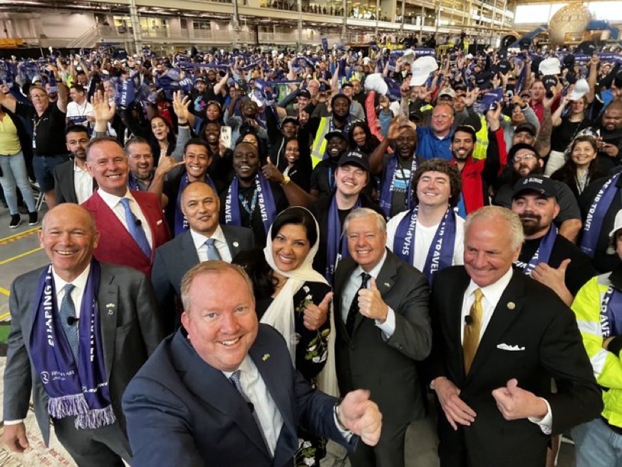 عبرت صاحبة السمو الملكي الأميرة ريم بنت بندر آلـ سعود سفيرة خادم الحرمين الشريفين لدى الولايات المتحدة الأمريكية عن سعادتها عن الاتفاقية المبرمة بين الخطوط الجوية العربية السعودية وخطوط الرياض وقالت في تغريدة على حسابها يسعدني التواجد في تشارلستون ، ساوث كارولينا للقاء فريق بوينج والاحتفال بالاتفاقية المبرمة بين @Saudi_Airlines و #RiyadhAir و @BoeingAirplanes ، والتي ستدفع المملكة العربية السعودية إلى مركز لوجستي عالمي ويولد 200.000 وظيفة سعودية مباشرة وغير مباشرة وعدد لا يحصى من الوظائف. فرص في التجارة والسياحة.