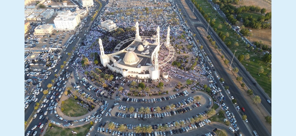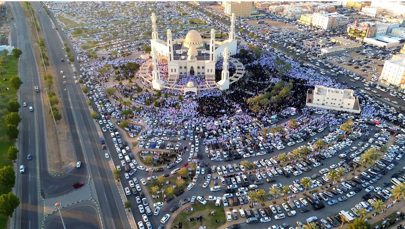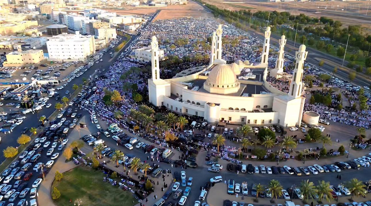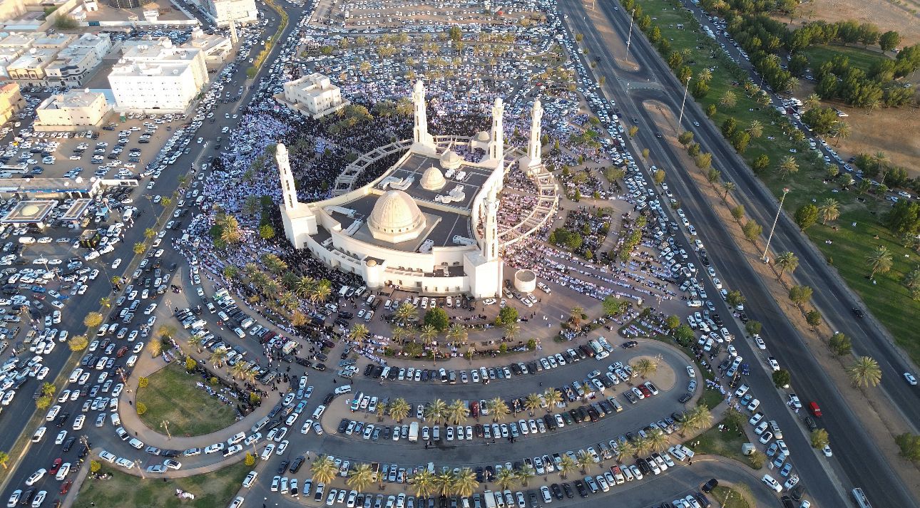 أدت جموع المصلين في مدينة تبوك اليوم صلاة عيد الأضحى المبارك في جامع الوالدين، والتقطت صور جوية مبهرة تظهر جموع المصلين وسط الإبداع المعماري الذي يميز ساحاته وأروقته.