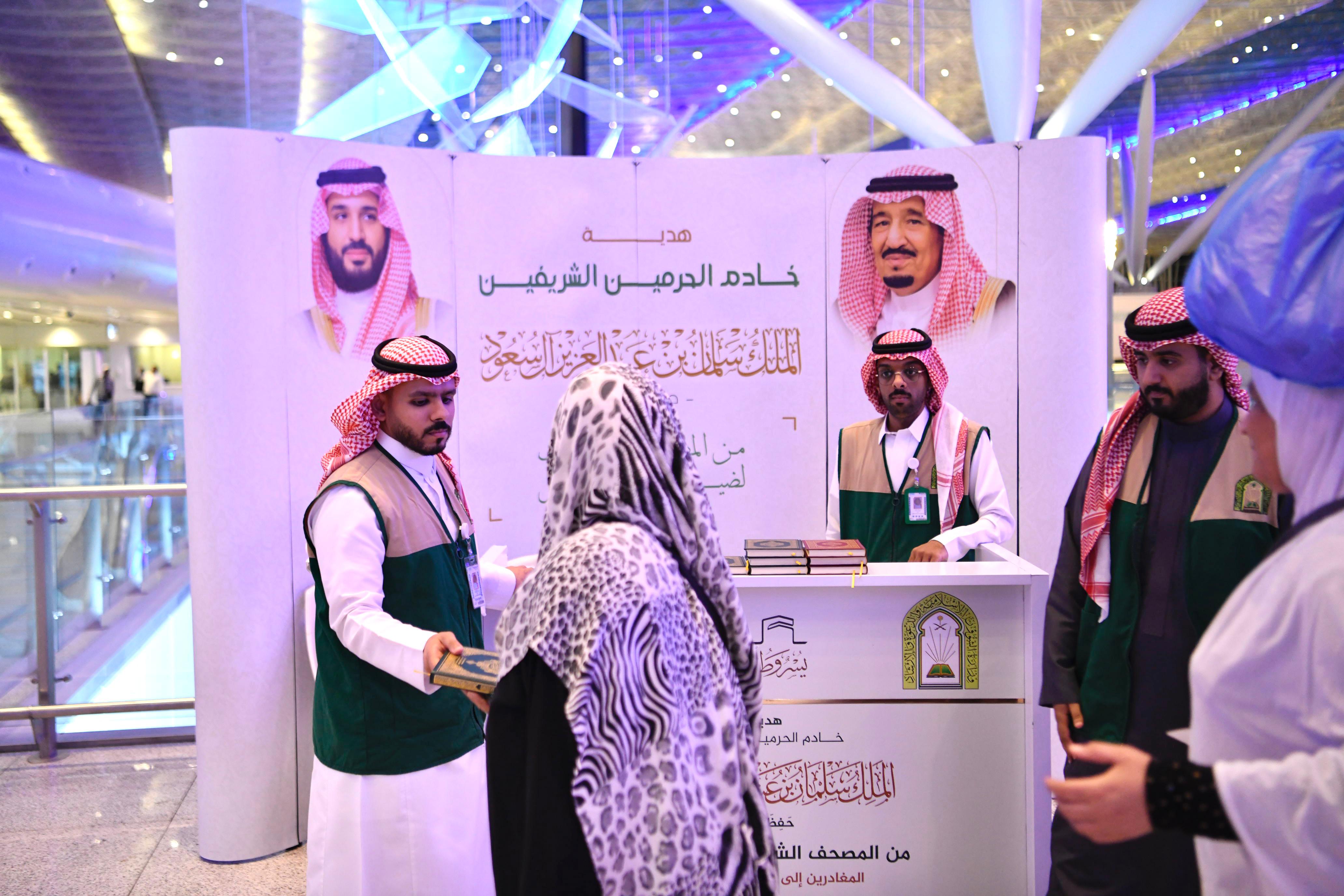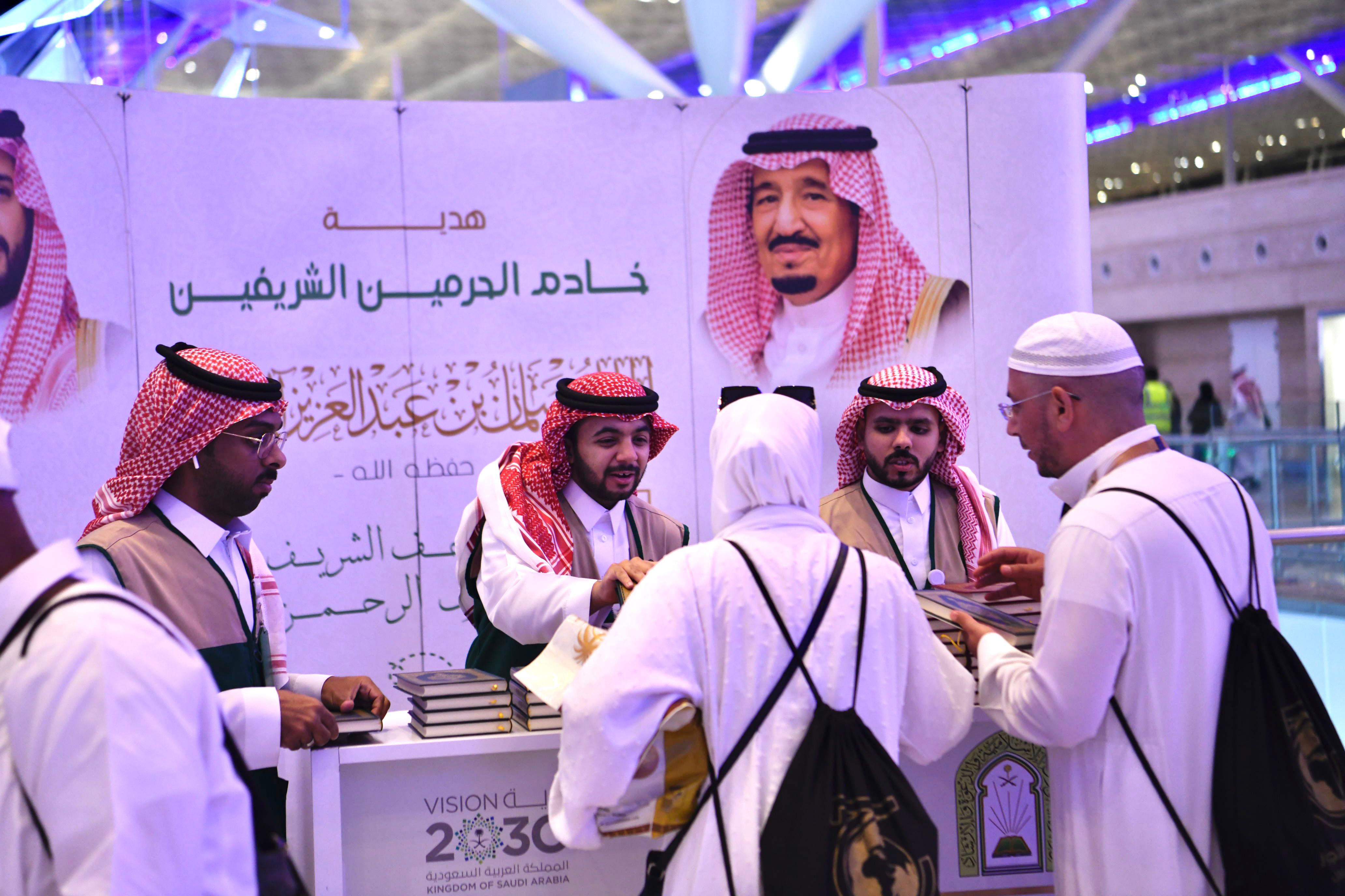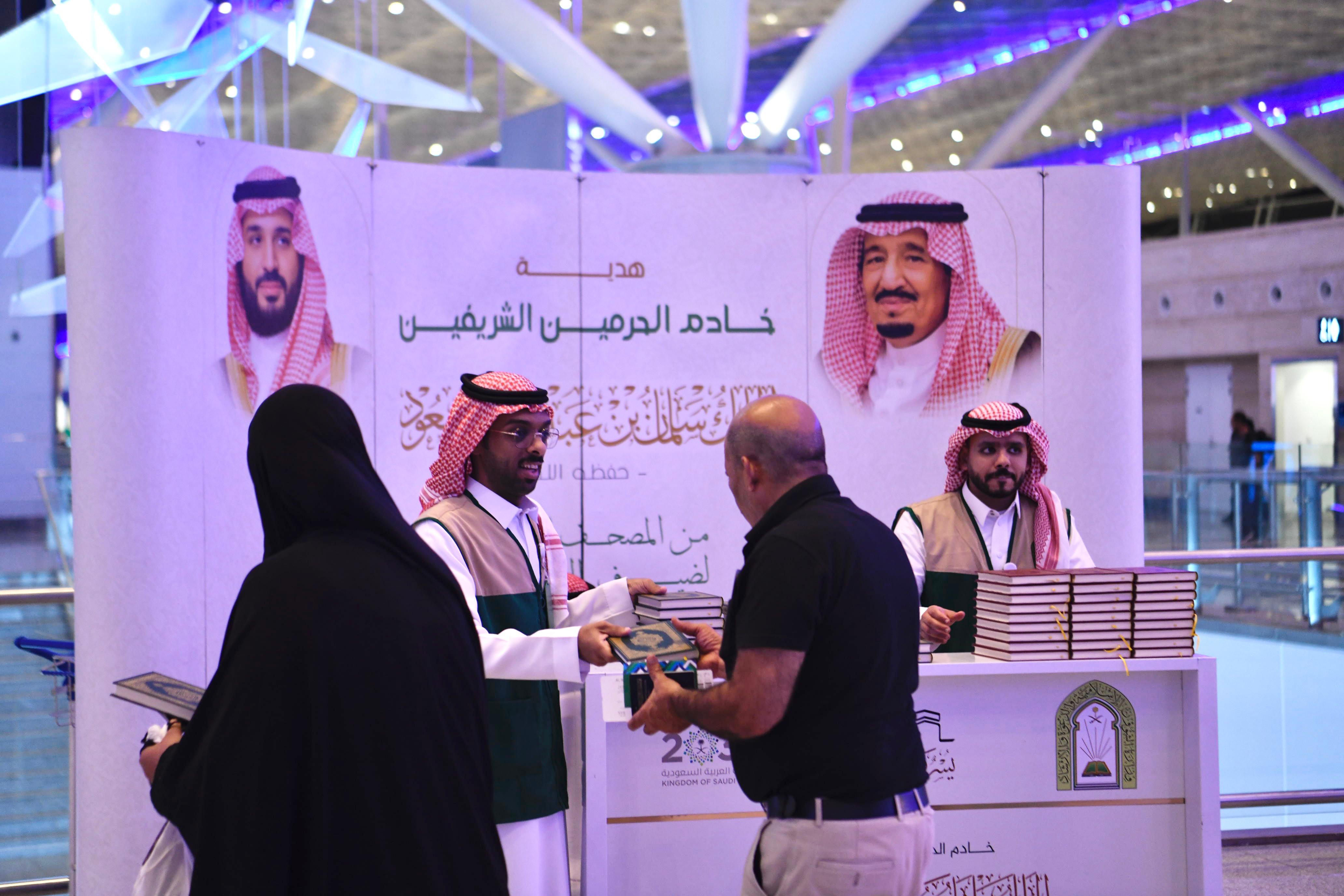 بدأت وزارة الشؤون الإسلامية والدعوة والإرشاد، ممثلة بفرعها في منطقة مكة المكرمة، أمس، توزيع هدية خادم الحرمين الشريفين على الحجاج المغادرين عبر مطار الملك عبدالعزيز الدولي بجدة، وميناء جدة الإسلامي، ومطار الطائف الدولي.. حيث تبلغ (646,652) نسخة من المصحف الشريف وترجمة معانيه.