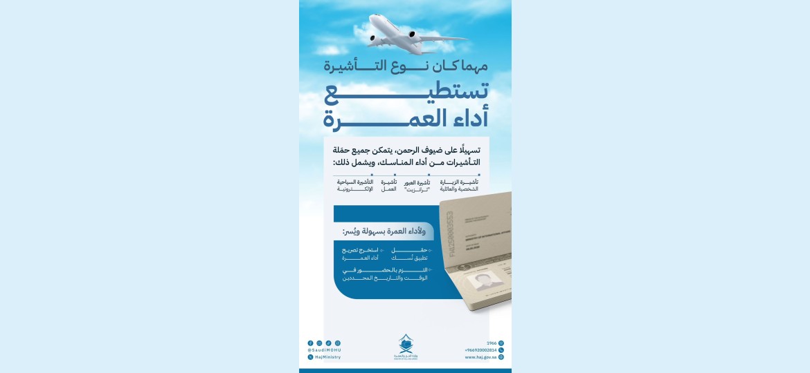 ونشرت وزارة الحج والعمرة إعلانًا رسميًا نوهت فيها عن البدء في تلقي استقبال طلبات الراغبين في أداء العمرة، وأوضحت الوزارة في سياق إعلانها :"مهما كان نوع التأشيرة تستطيع أداء العمرة، تسهيلًا على ضيوف الرحمن، يتمكن جميع حملة التأشيرات من أداء المناسك، ويشمل ذلك، تأشيرة الزيارة الشخصية والعائلية، وتأشيرة العبور "ترانزيت"، وتأشيرة العمل، والتأشيرات السياحية الإلكترونية".