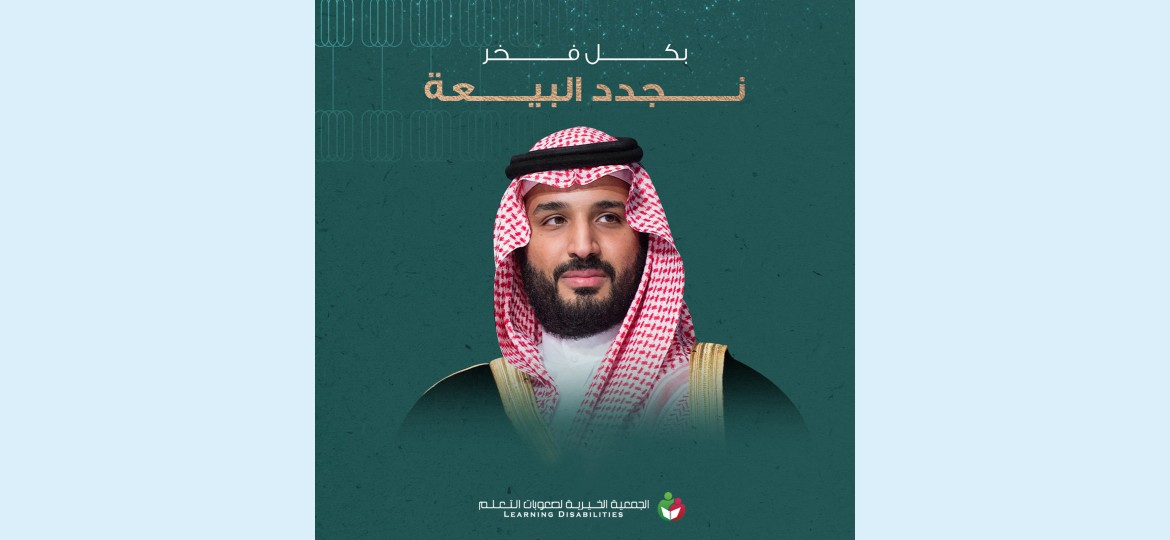 رفع جميع منسوبي ومنسوبات الجمعية الخيرية لصعوبات التعلم أصدق معاني الولاء والطاعة وأسمى آيات التهنئات والتبريكات لصاحب السمو الملكي الأمير محمد بن سلمان بن عبد العزيز آل سعود- -أيده الله تعالى- بمناسبة الذكرى السابعة للبيعة المباركة.