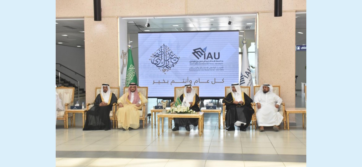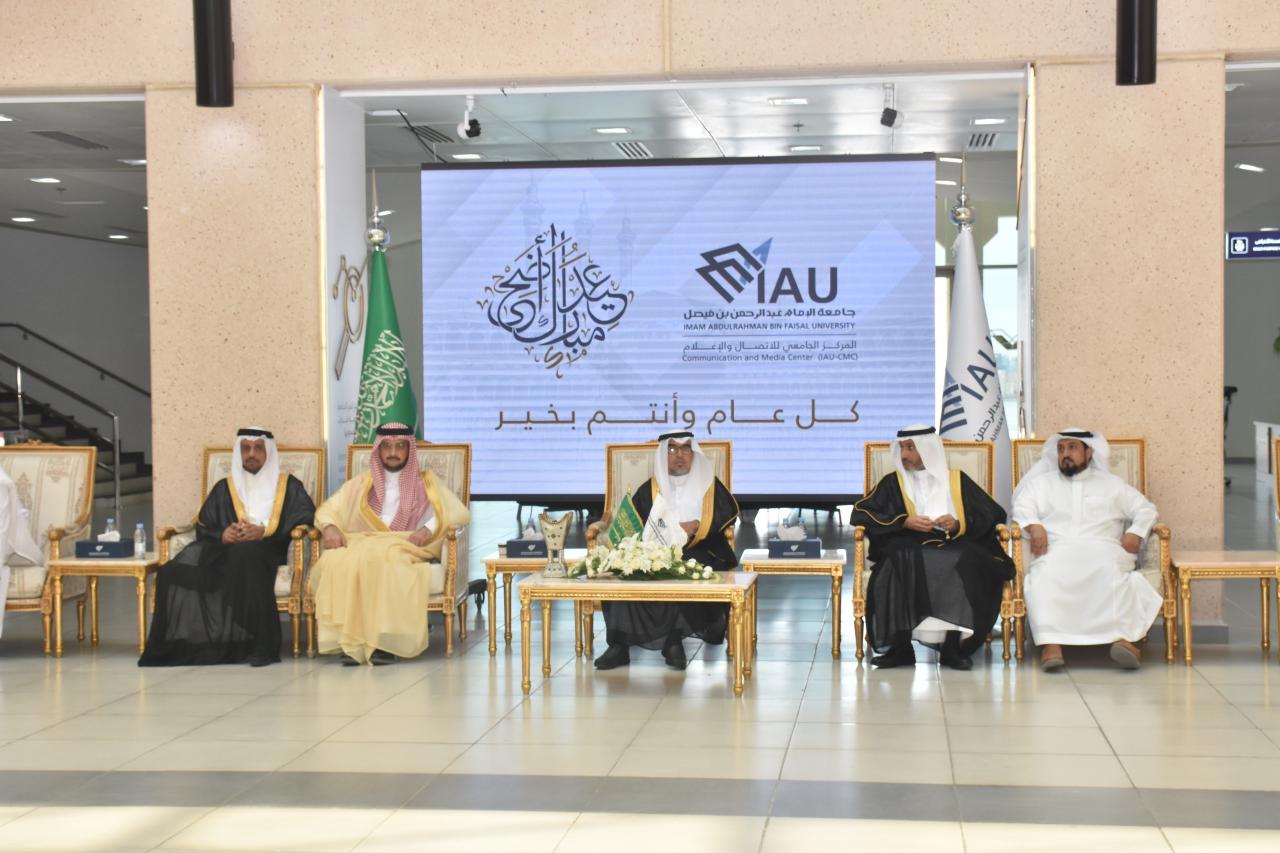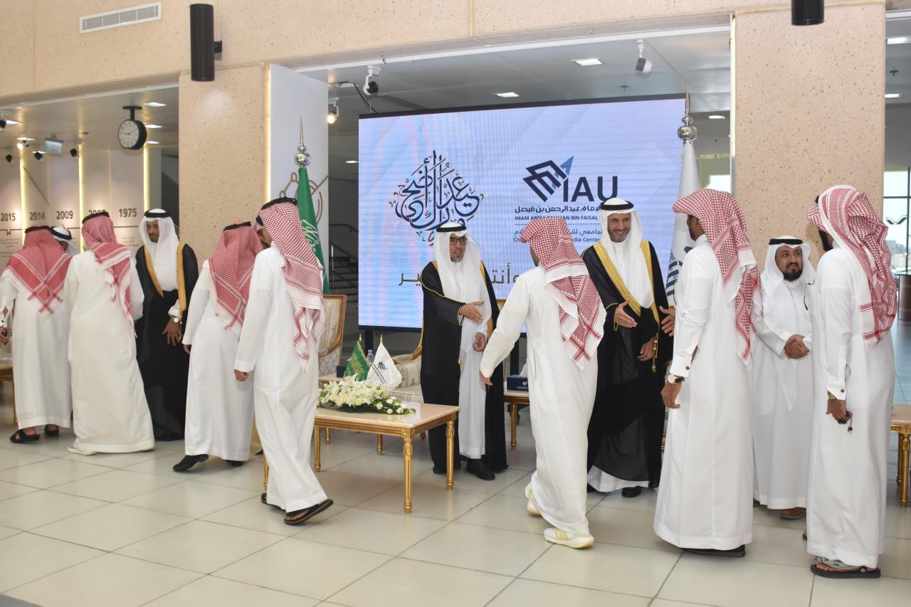 نظمت جامعة الإمام عبد الرحمن بن فيصل اليوم ممثلة بالمركز الجامعي للاتصال والإعلام حفل معايدة لمنسوبيها بمناسبة عيد الأضحى المبارك، برعاية معالي رئيس الجامعة الأستاذ الدكتور عبد الله الربيش، وبحضور نائب الرئيس للشؤون الأكاديمية د. غازي العتيبي، و نائب الرئيس للبحث العلمي والابتكار أ.د. فهد الحربي، و نائب الرئيس للشؤون الإدارية والمالية أ.د. عبدالواحد المزروع، ومستشار معالي الرئيس للشؤون الفنية م.عبد العزيز المنصوري، ومدير المركز الجامعي للاتصال والإعلام د.طفيل اليوسف، وعددا من عمداء الكليات والمراكز والمعاهد ومنسوبي الجامعة .