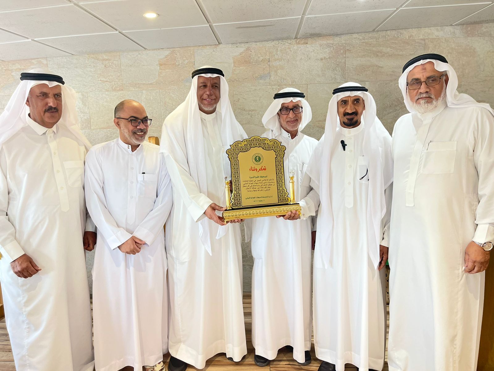 بعد الإفطار، قدم رئيس النادي الكابتن عبدالله المختار درعا تذكاريا إلى رئيس صحيفة خليج الديرة الأستاذ منصور الرميح وذلك لجهودهم في الاعلامي المميز وتغطية المناسبات الاجتماعية والرياضية في سيهات. وشكر الرميح إدارة النادي على تكريمه منوها أن ما تقوم به الصحيفة هو واجب اجتماعي، وان نادي مشاة سيهات يستحق الأكثر معللا أن تحوله من فريق النادي هو نقلة نوعية يُشكر القائمين عليها.