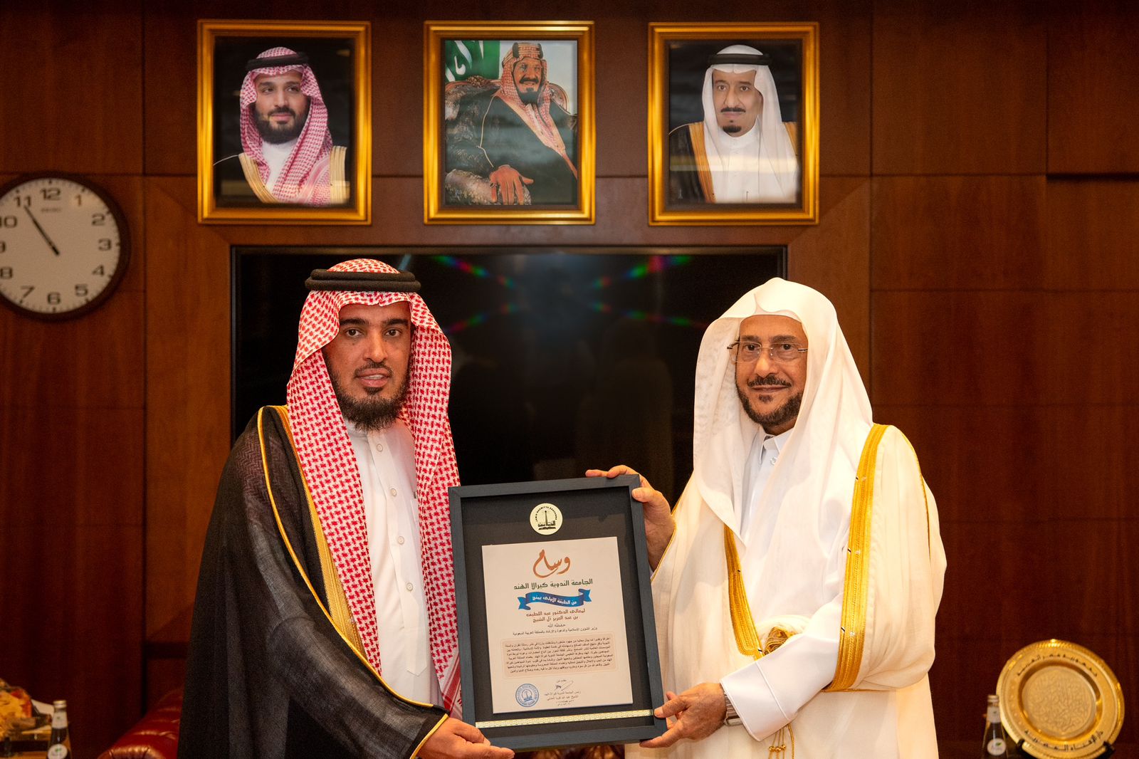 تسلم معالي وزير الشؤون الإسلامية والدعوة والإرشاد الشيخ الدكتور عبداللطيف بن عبدالعزيز آل الشيخ، اليوم الأربعاء العشرين من شهر ذي الحجة 1445هـ، وسام الجامعة الندوية الإسلامية في ولاية كيرلا الهندية من الدرجة الأولى، ودرعاً تذكارياً من جمعية خريجي الجامعات السعودية في الهند.