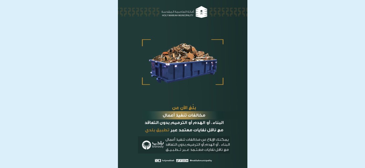 وأشارت الأمانة الى ان التقارير الصادرة تشير الى ارتفاع درجة الوعي وانحسار المخالفات في هذا الشأن عن الاعوام السابقة ، وذلك نتيجة الحملات التوعوية والبرامج الرقابية ، حيث بلغ عدد البلاغات التي تلقتها الأمانة والمتعلقة بمخلفات البناء (91) بلاغ وذلك خلال الثلاثة اشهر الماضية حتى نهاية 24 يونيو 2024م ، وقد تم سداد ما نسبته اكثر من 45% من هذه البلاغات ، في حين لا يزال عدد من هذه البلاغات تحت الاجراء والمتابعة ، كما بلغ عدد المخالفات التي تم رصدها خلال نفس الفترة والمتعلقة بعدم التعاقد مع ناقل معتمد (7) مخالفات وتم تطبيق لائحة الجزاءات النظامية على المخالفين.