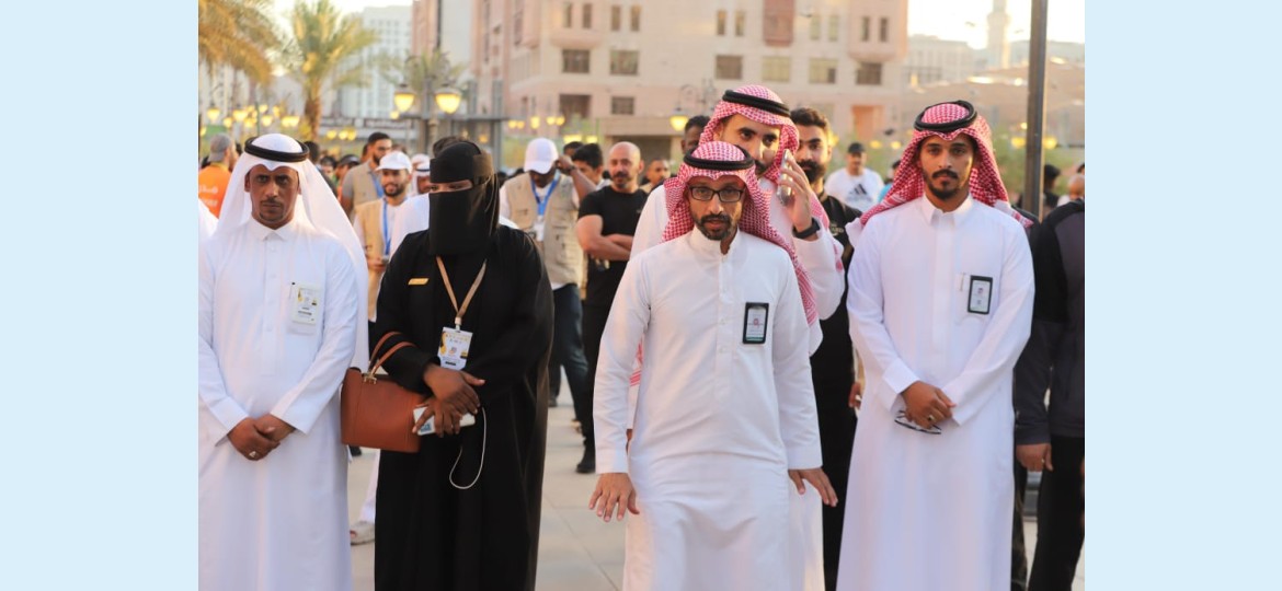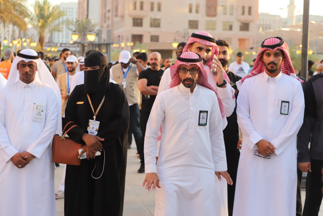 إنطلق الجميع بقيادة قائدة الفريق : عيشة فلاته يتقدمهم ممثلي وزارة الرياضة وسعادة المقدم : إبراهيم رشوان من القوات المسلحة وكبار الشخصيات وممثلي الجهات الحكومية وأعضاء فريق مبادرون التطوعي والفرق التطوعية ، مشياً من نقطة الانطلاق وهي ساحة مسجد الغمامة، بمشاركة عدد من ضيوف الرحمن والزوار، تغمرهم السعادة والسرور .