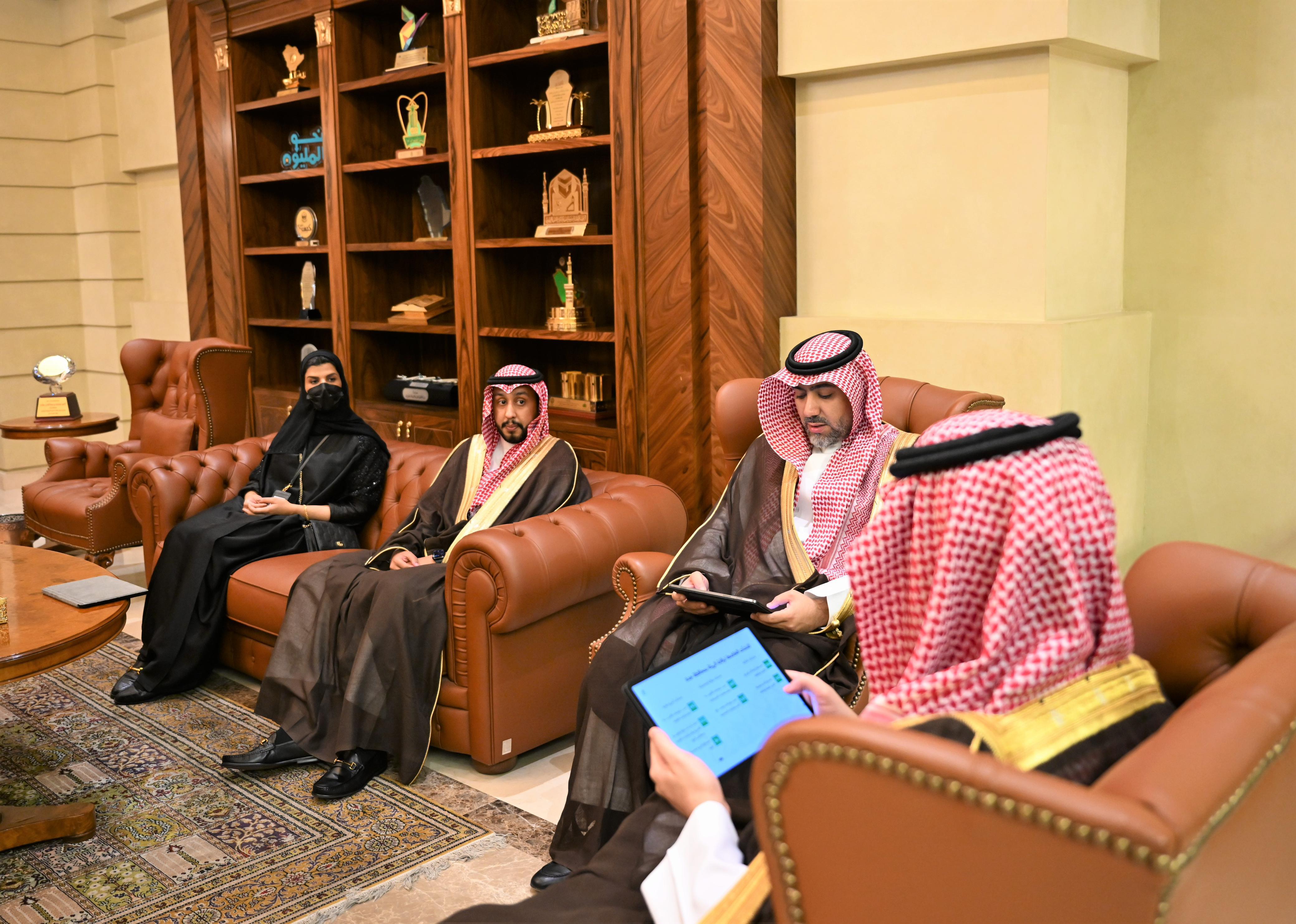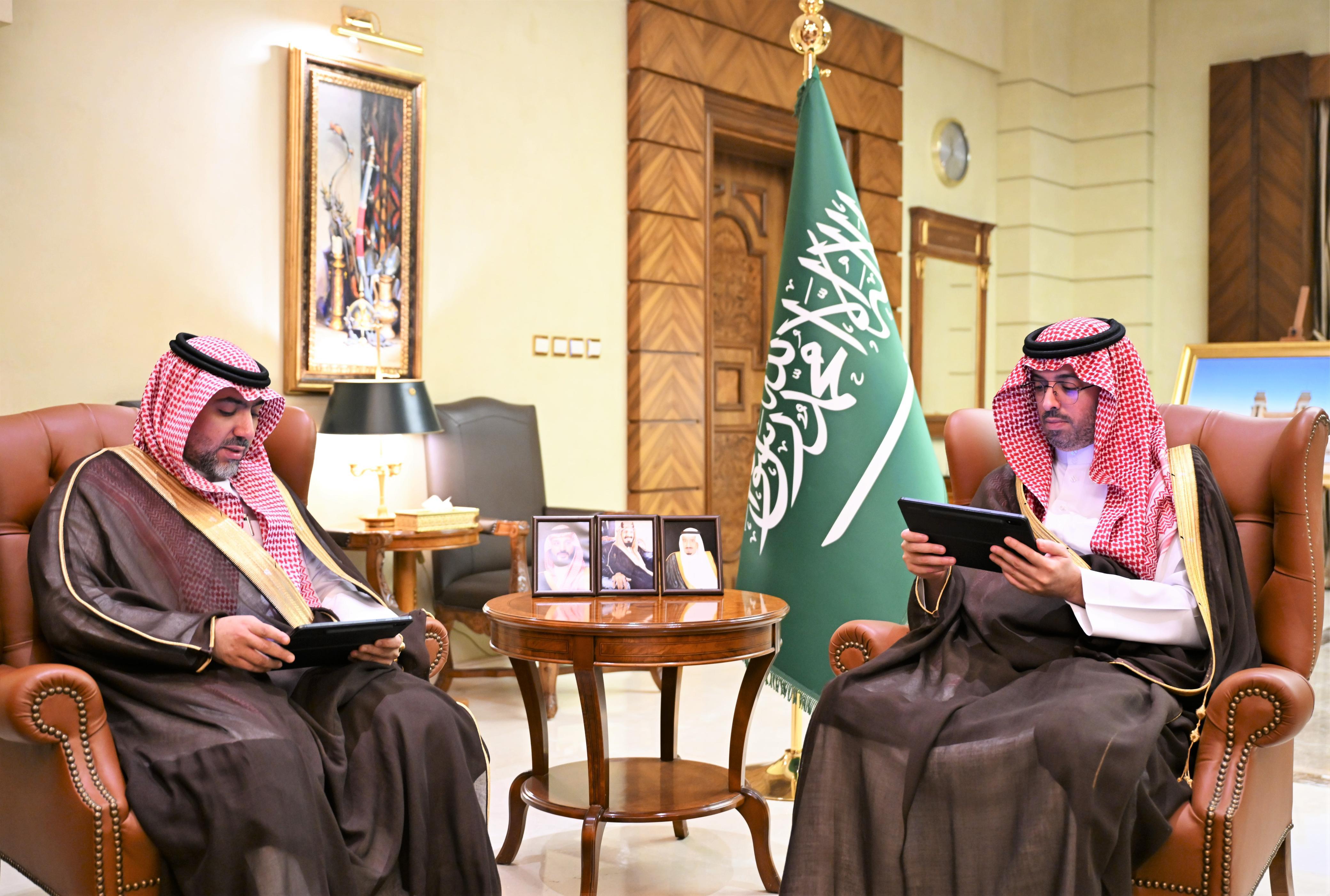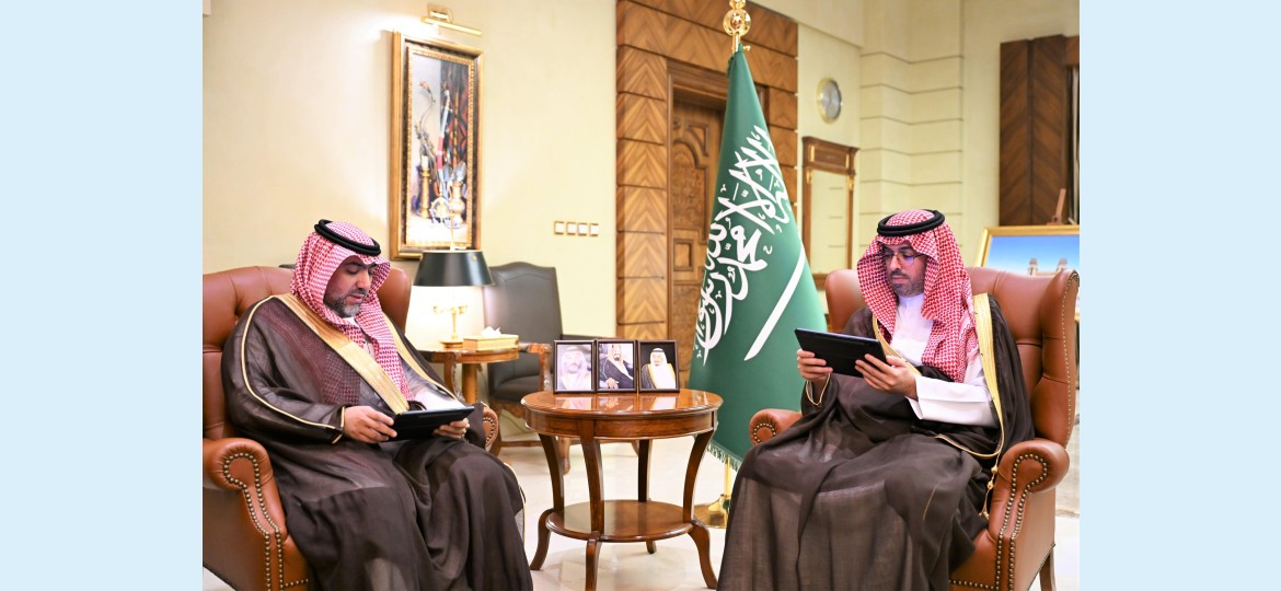 واطلع سموّه خلال الاستقبال على عرض موجز يتضمن أعمال وأنشطة الفرع بالمحافظة, ودوره الرقابي في التأكد من سلامة الغذاء والدواء والأجهزة الطبية وتوفرها، وتعزيز الجانب الوقائي والتوعوي لدى المواطنين والمقيمين، بالإضافة إلى خطط الهيئة لتنفيذ الجولات الرقابية على المنشآت للتحقق من التزام المنشآت بالاشتراطات والحصول على التراخيص اللازمة.