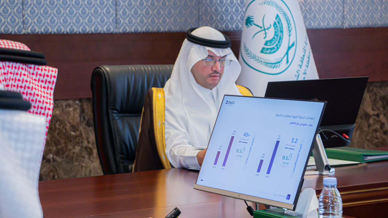 واطلع سموّه على التقرير السنوي لشركة مطارات الدمام، المتضمن إنجازات أسهمت في تنشيط الحركة الجوية بمطار الأحساء الدولي، كما اطلع على أبرز مشاريع شركة مطارات الدمام المُنجزة والمستقبلية، بما يتوافق مع رؤية المملكة 2030، والتي تنعكس إيجابًا على حركة المسافرين المحليين والدوليين صوب محافظة الأحساء ومطارها الدولي الذي شهد في أبريل الماضي تدشين التوسعة الأكبر في تاريخه، وذلك تأكيدًا على تطوير البنية التحتية، وتحسين تجربة المسافرين ، لتحقيق مستهدفات الإستراتيجية الوطنية لقطاع الطيران في المملكة.