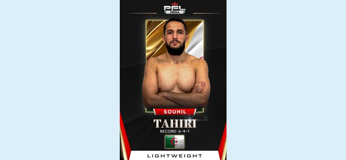 يتابع البطل الجزائري سهيل طاهري استعداداته للسلسلة الثانية من نزالات الموسم الأول, لبطولة رابطة المقاتلين المحترفين (PFL) لمنطقة الشرق الأوسط وشمال إفريقيا, المقرر انطلاقتها في العاصمة السعودية الرياض, في الثاني عشر من الشهر الجاري، حيث يطمح للفوز بلقب الوزن الخفيف, ليتمكن من حجز مكان في الدوري العالمي.