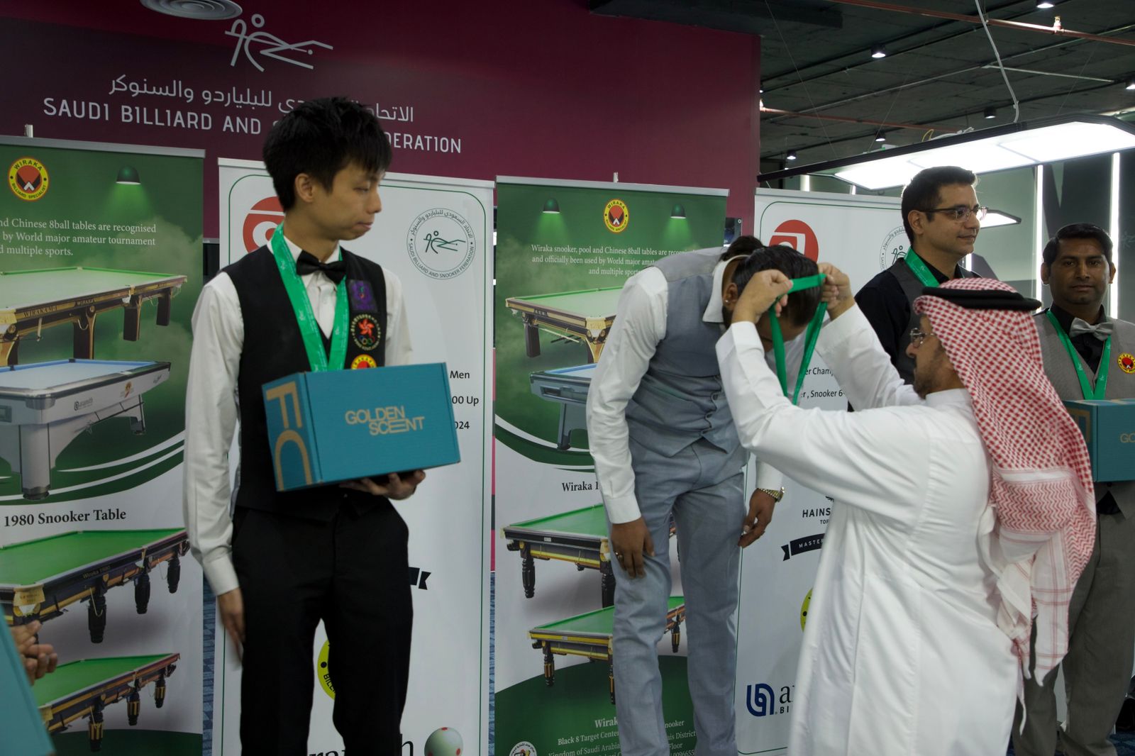 وتوج رئيس الاتحاد السعودي للبلياردو والسنوكر الدكتور ناصر الشمري وبحضور مدير البطولة الاستاذة نجلاء العليان أصحاب المراكز الأولى في هاتين المنافستين .