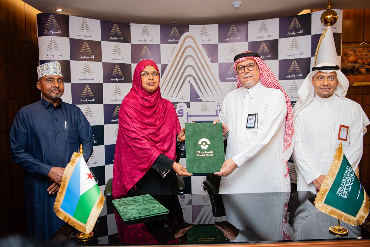 وشهد التوقيع حضور نائب رئيس مجلس إدارة مطوفي حجاج الدول العربية "أشرقت" أ. موفق خوج ، ونائب الرئيس التنفيذي لرحلات ومنافع أ. محمد الطيب الخزامي، فيما حضر من الجانب الجيبوتي أ.إسماعيل حسن روبله رئيس مكتب شؤون حجاج جيبوتي وأعضاء المكتب.