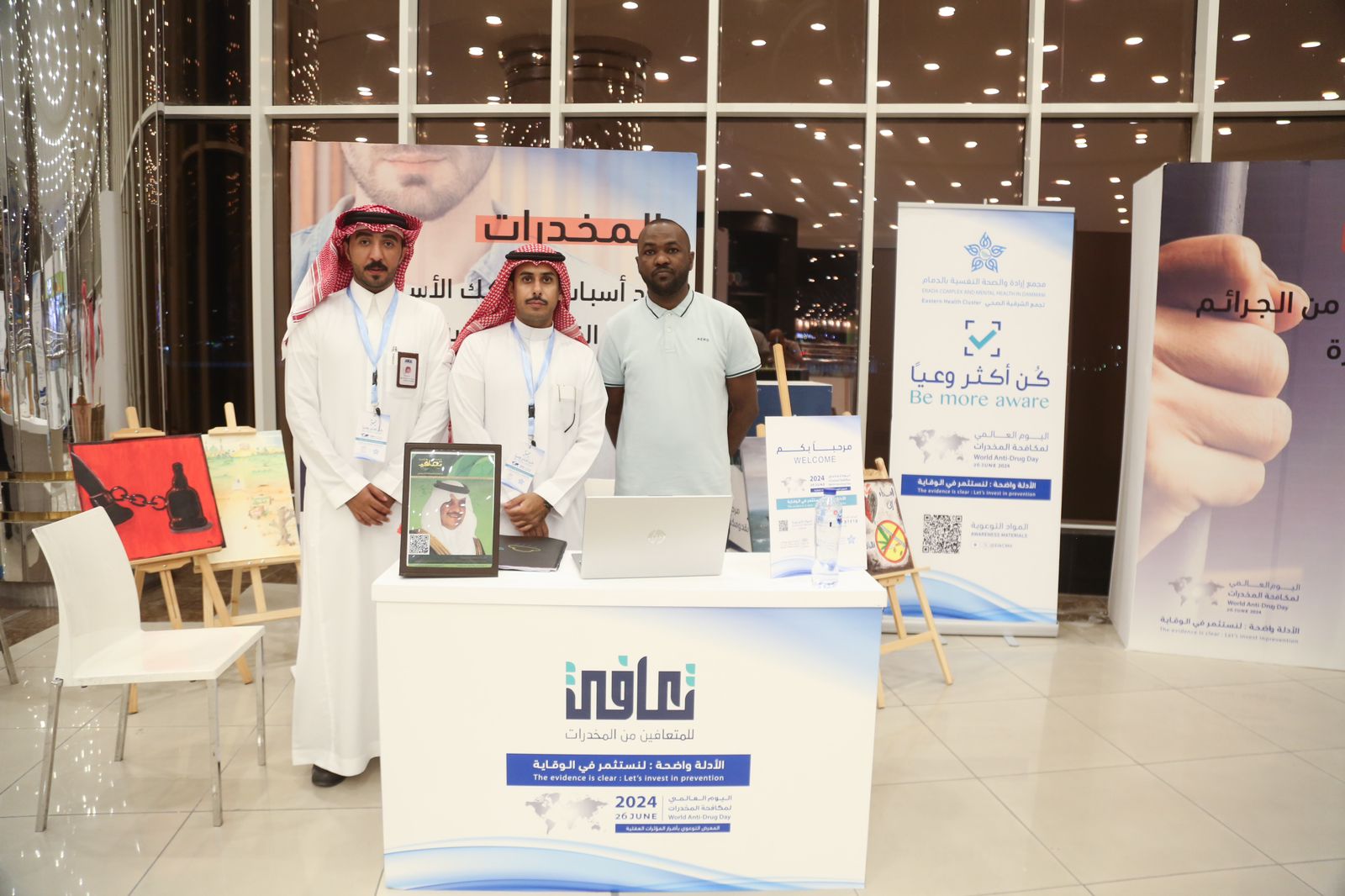 وتشارك جمعية تعافي في فعاليات اليوم العالمي لمكافحة المخدرات والذي ينظمه تجمّع الشرقية الصحي ممثلاً في مجمع إرادة والصحة النفسية بالدمام بالتعاون مع جمعية بصيرة للدعوة والإرشاد وتستمر الفعاليات لمدة 7 أيام العثيم مول ويحتوي المعرض على إقامة 16 ركن توعوي يشارك خلالها 10 جهات عسكرية وخيرية للتوعية بأضرار المخدرات .