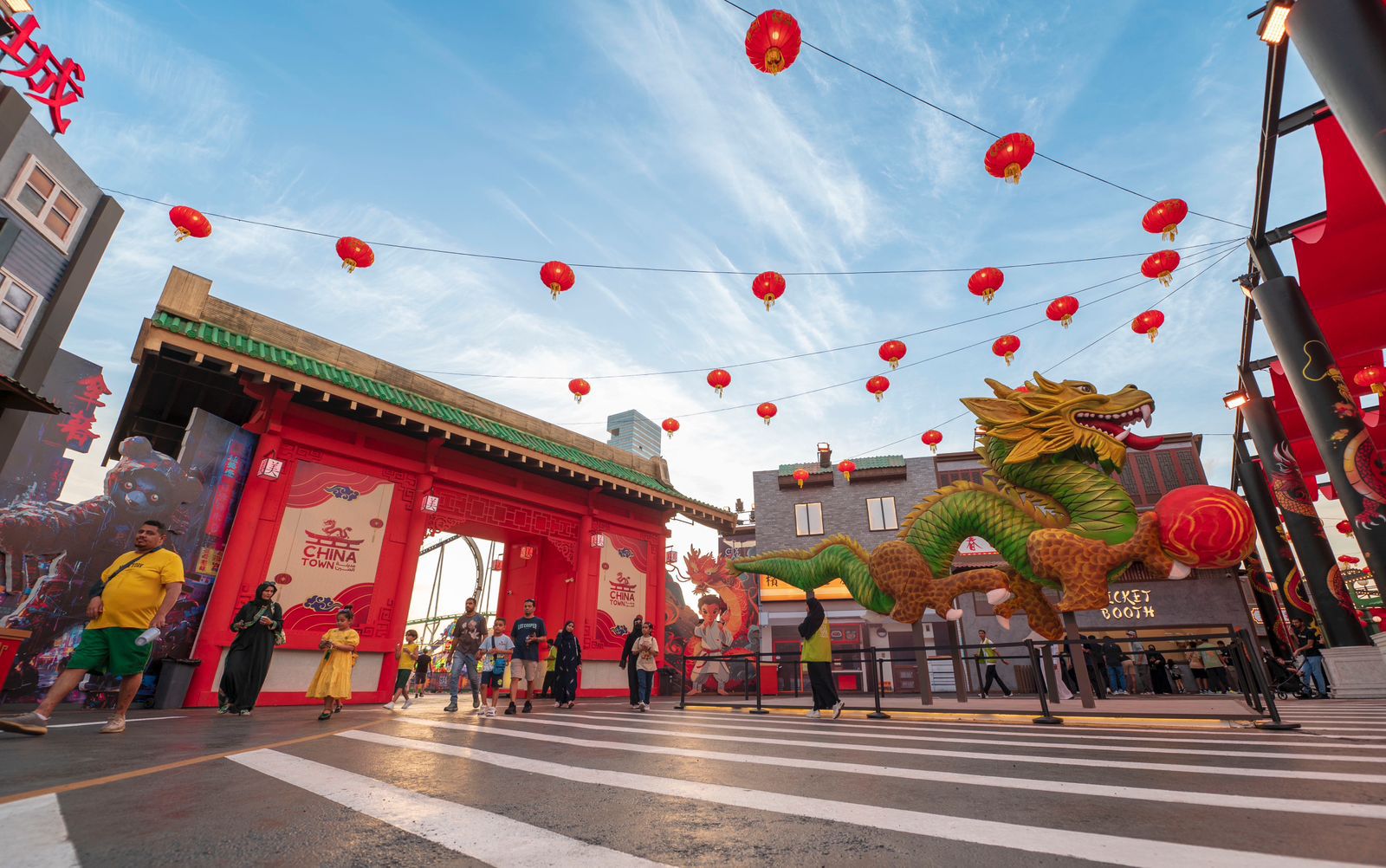وتزداد روعة التجربة بفضل التنوع الكبير في الأنشطة المتاحة، حيث يستمتع الزوار بمشاهدة الفنون والعروض المتجولة التي تسلط الضوء على التقاليد الصينية، حيث يمكنهم التفاعل مع الألعاب والمغامرات المتنوعة، مثل لعبة "ماجك"، و"ميني بمپر كارز"، و"دمبو فلاينج"، و"إنتوكس"، و"فريزي"، و"دبل لوپ كوستر". هذه الألعاب تجذب محبي التشويق والإثارة، مقدمةً لهم مغامرات لا تُنسى مليئة بالحماس والمتعة.