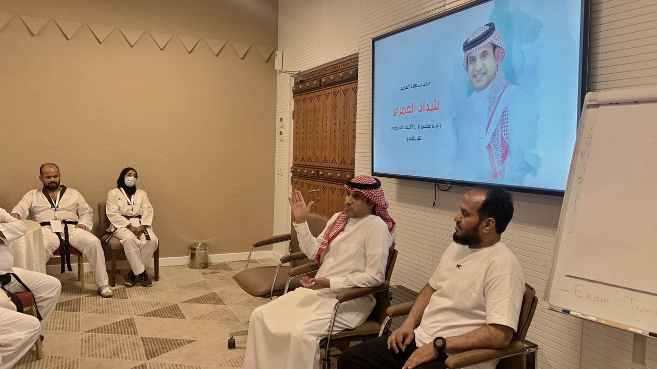 حضر الفعاليات رئيس الاتحاد العميد شداد العمري الذي بدوره أشاد بالمدربين وحرصهم على تطوير أنفسهم من خلال التحاقهم بالدورات الداخلية والدولية والتي تصب في نهاية المطاف لمصلحة التايكوندو السعودي وزيادة انتشاره مبيناً بأن اللبنه الأولى لصناعة البطل هو "المدرب" موجهاً شكره لمحاضري الدورة ولمعهد إعداد القادة على الجهود المبذولة لتطوير مدربين التايكوندو وصقلهم بالعلوم الرياضية التي تهمهم ، وقد أشرف على الدورة رئيس اللجنة الفنية بالاتحاد ثامر السعران .