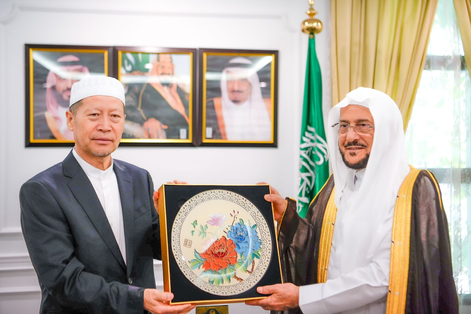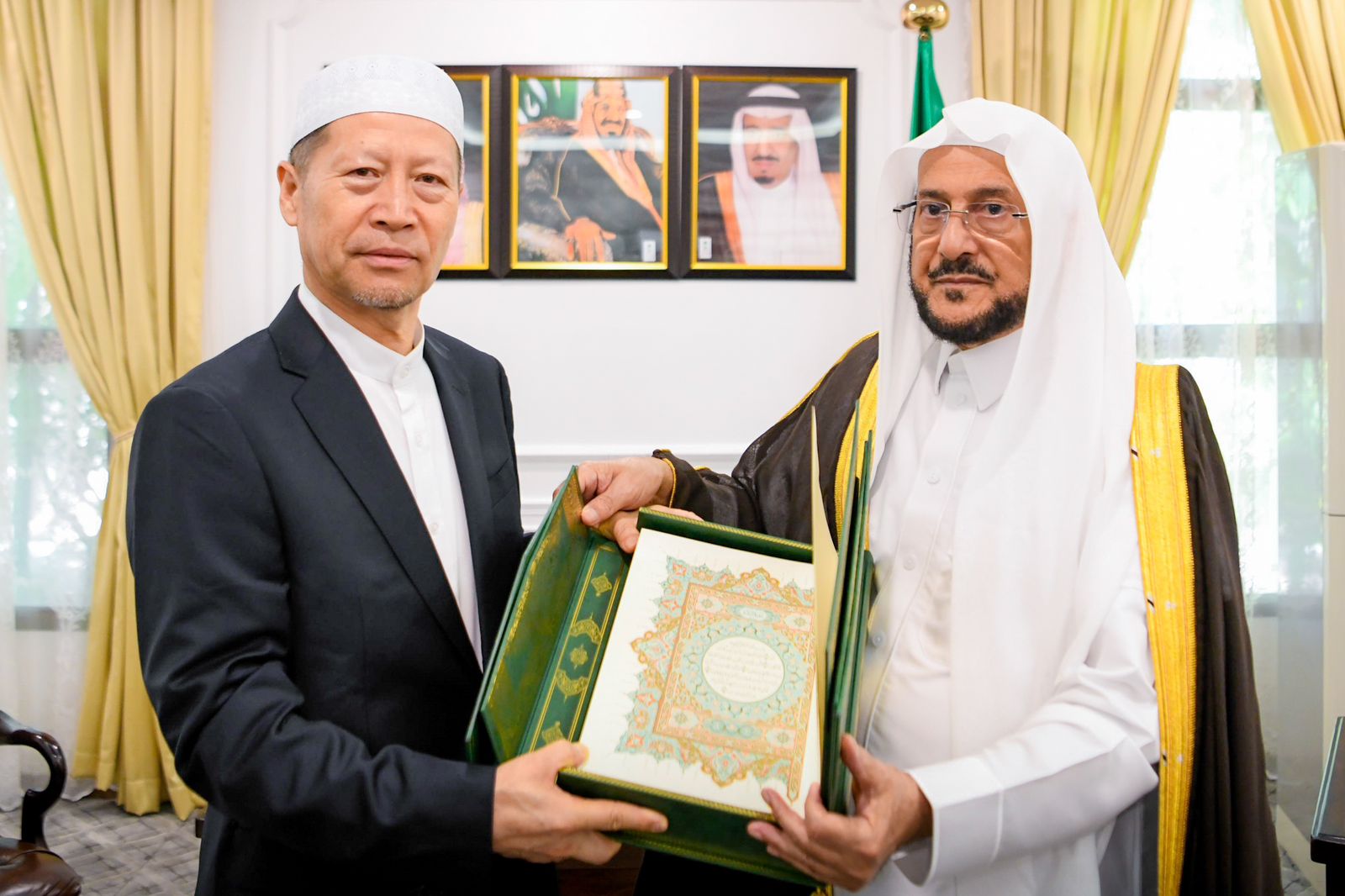 التقى معالي وزير الشؤون الإسلامية والدعوة والإرشاد الشيخ الدكتور عبداللطيف بن عبدالعزيز آل الشيخ في مكتبه بجدة اليوم الخميس الموافق 28/12/1445هـ، رئيس الجمعية الإسلامية الصينية السيد حسن يانغ فام ينغ ونائبه السيد عادل جيانغ حاج كريم.