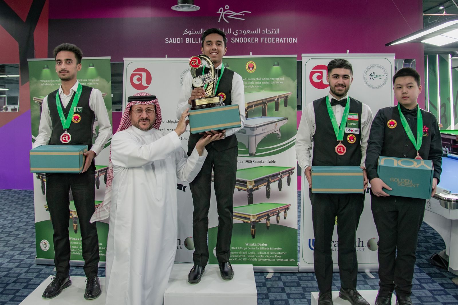 وسيتم تتويج اصحاب المراكز الأولى في منافسات " سنوكر 6 كرات فرق ,سنوكر 6 كرات للسيدات ,البلياردو الإنجليزي للرجال " .