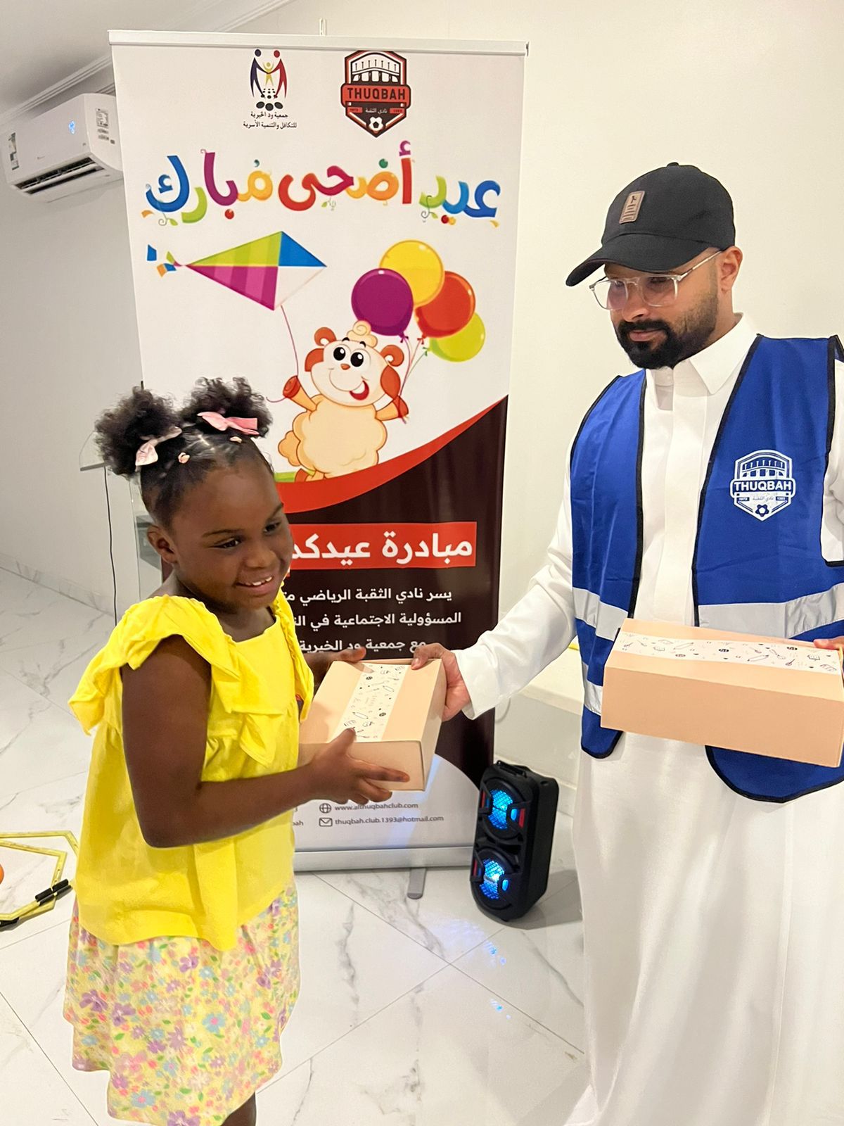 الدمام-النهار أقامت إدارة نادي الثقبة الرياضي متمثلًا بقسم المسؤولية الاجتماعية مبادرة (عيدكم عيدنا) بالتعاون مع جمعية ود الخيرية للتكافل والتنمية الأسرية بهدف إدخال البهجة والسرور للأطفال و التعرف على الألعاب المختلفة بالنادي. حيث تم تقديم هدايا و ألعاب متنوعة في المُبادرة لأطفال جمعية ود إحتفالًا بعيد الأضحى المبارك وتم استثمار الطاقات الكامنة لديهم بما يتناسب مع أعمارهم وذلك من خلال التنوع في مجالات الترفيه والرياضة والتعرف على الألعاب المختلفة في النادي واستقطاب المواهب الرياضية وتمت المبادرة تحت إشراف مدير المسؤولية المجتمعية الأستاذة عائشة الناجم بدعم من رئيس النادي الوليد الصياح ورئيسة جمعية ود الأستاذة نعيمة الزامل. الجميع أشاد بالمبادرة مقدمين الشكر والتقدير لكل من ساهم وعمل على أنجاحها مثمنين كل الجهود ومتمنين التوفيق للجميع.