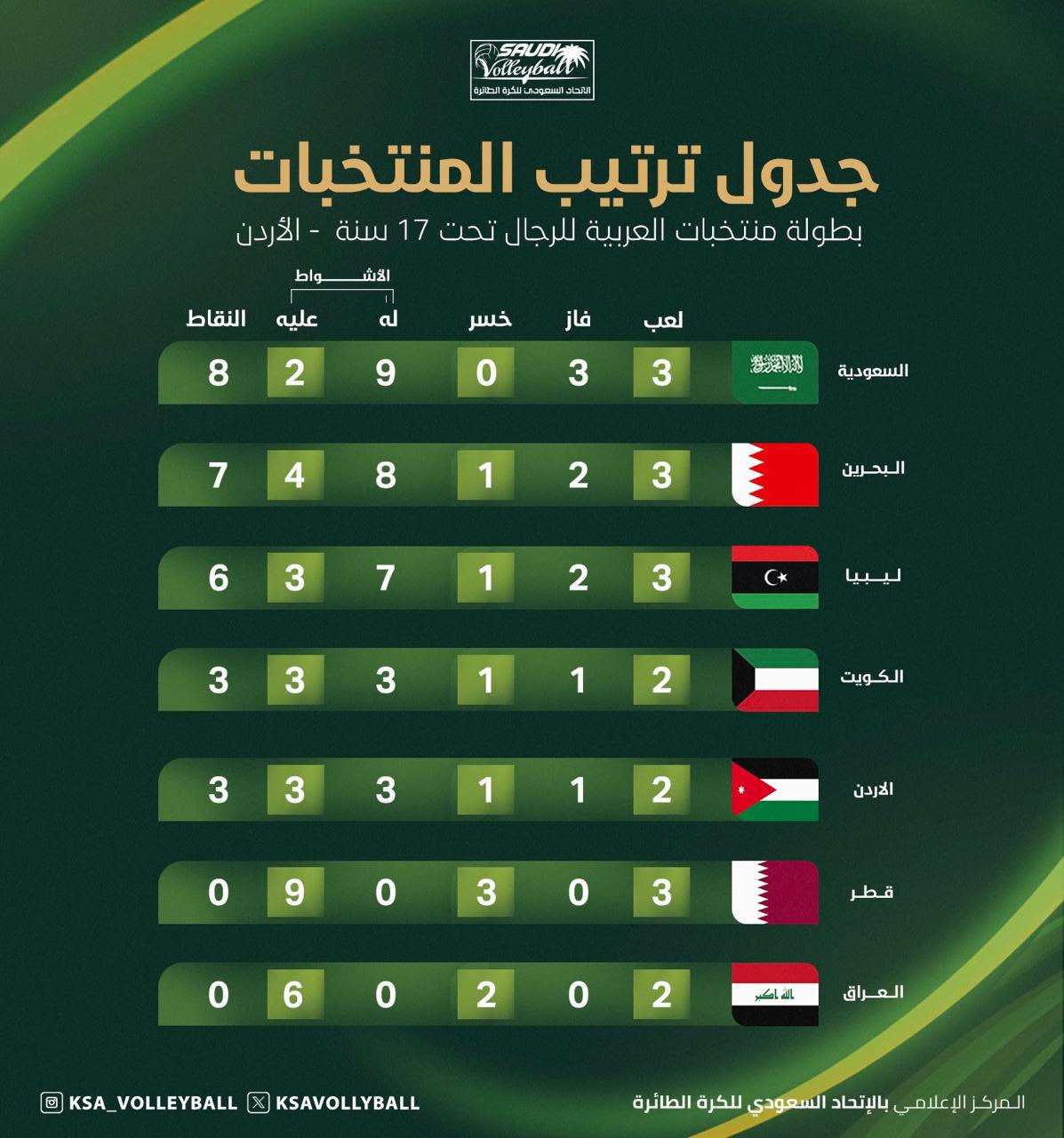 يخوض المنتخب السعودي لكرة الطائرة رابع مبارياته من البطولة الأولى للمنتخبات العربية تحت 17 سنة غداً الاحد عندما يواجه منتخب العراق عند الساعة الثالثة مساء التي تستضيفها العاصمة الأردنية عمان على صالة قصر الرياضة