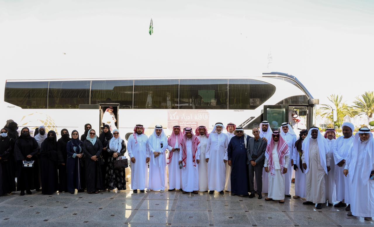 وكان سعد اللحياني ملازم للدكتور في الملتقى وفي الباص والابتسامة لاتفارقه لكونه استاذه بالجامعة وكان الشاعر ياسر الحاشدي متألق بإلقاء بعض من قصائده مع قصص لبعضها نالت على أعجاب الجميع وبعدها نثرت علينا الدكتوره هيفاء فقيه صاحبت مقهى روشن من روائع نثرها فيها معاني ساميه بالموده والمحبه والصدق أما الدكتوره عفت خوقير استاذة الأدب الإنجليزي ذلك العلم في ثقافتنا وحركة الترجمة فأنتبذت لها مكاناً بجانب نافذة الباص وهي في هدوء وسكينه لانسمع لها همسا والشاعرة الكبيرة الدكتوره مريم حديدي التي تفاعلت مع هذه الأجواء بقصائد من روائع الشعر العامودي عبر قروب القافلة فقلت عنها بأن الشعر لم يخطئها وهي بالمناسبة زوجة الشاعر خالد البار وهو برفقتنا بالرحلة وكانت الكاتبة الدكتوره ماجده عبدالله حاضره وألقت نص شعري أكثر من رائع وكان التصفيق يعقب كل مشاركة اعجابا والأستاذ عماد ابو علامة ابى الا ان يشارك بإلقاء قصيدة لنزار قباني وهي التي عنوانها "إمرأة حاقدة" وكأن العنوان آثار حفيظة السيدات ولكن القصيدة ترمي لعكس عنوانها واضفى عليها عماد بصوته الشجي جمالا والشاعر محمد العرافي إنشغل بتوزيع ديوانين له مع التوقيع عليها للسيدات والرجال والشاعر خالد البار الذي نثر علينا من إبداعاته الشعريه وبشخصيته المرحه وكانت الأستاذه فاتن الكاتبة المتألقه بصحافتنا تجسد الكرم الأصيل لم يهدء لها بال حتى وزعت على الجميع بما جادت به من مأكولات خفيفة والقهوة السعودية بأصالتها وكانت هناك طقوس للبعض يلتزم الهدوء ولكنهم مستأنسون بهذا الأنس والأخ مشهور يراقب المشهد البانورامي وتبدو على ملامح وجهه الرضا والسعادة لرحلة هذه القافلة والذي ابلى بلاءاً حسن فيها والأستاذ عبدالعالي على غير عادته التزم الصمت يبدو بأن السهر اخذ منه جهده بينما عثمان مدني في حالة من اليقظة والخلود للنوم والأستاذ محمد المالكي نحى بعمامته جانباً وبدء ينسجم مع شدو الدكتور عمر ويردد معه ومتعب المجرشي الأنيس في حواراته الموزعه مابين القنديل والبرفسور عبدالمجيد ومعهم أحمد حلبي ووليد عبدالرزاق خفيف الظل المبتسم يمارس هوايته في الثقاط الصور وتتجه كاميرته بإتجاه الدكتور عمر ليحفظ من ألحانه شيء للذاكرة وخالد القرشي ذلك الشاب المؤدب الذي تكاد لاتسمع له صوتا طلب حبوب بنادول لوالدته ووجدتها عند الدكتور عمر في حقيبته وحينها تفرغ للسائق ليوصف له إتجاه طريق العوده واولدته هي القاصة خديجة الزيلعي حضيت القافلة بوجودها مع الدكتوره أبرار منشي ونوره الحاج والروائية فاطمة وكانت سعادتي لاتوصف حين علمت من الأستاذة مريم المحمودي المحاضرة بقسم الإعلام والاتصال بجامعة أم القرى بمرافقة والدتها الخالة عزيزه الزاهد لنا وكان الملفت في القافلة بأن استاذات اللغة الإنجليزية يشكلون نسبة تزيد عن تخصصات الأخرين ومنهم المترجمة للأدب السعودي والقاصة الأستاذه ناديه خوندنه وخلود بن صديق ومعها شقيقتها عهود وأخذت الرحلة بالإقتراب من مكه وفي برهة من الوقت وأذا بسائق الباص يعلن وصول القافلة إلى محطة التجمع فودعنا بعضنا بعد أن عشنا لحظات لاتنسى