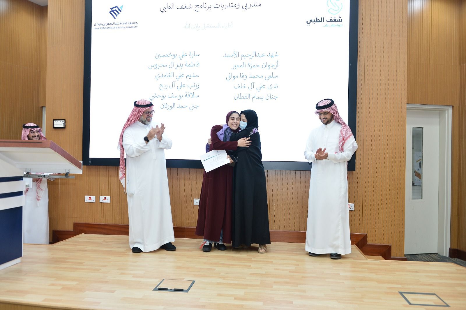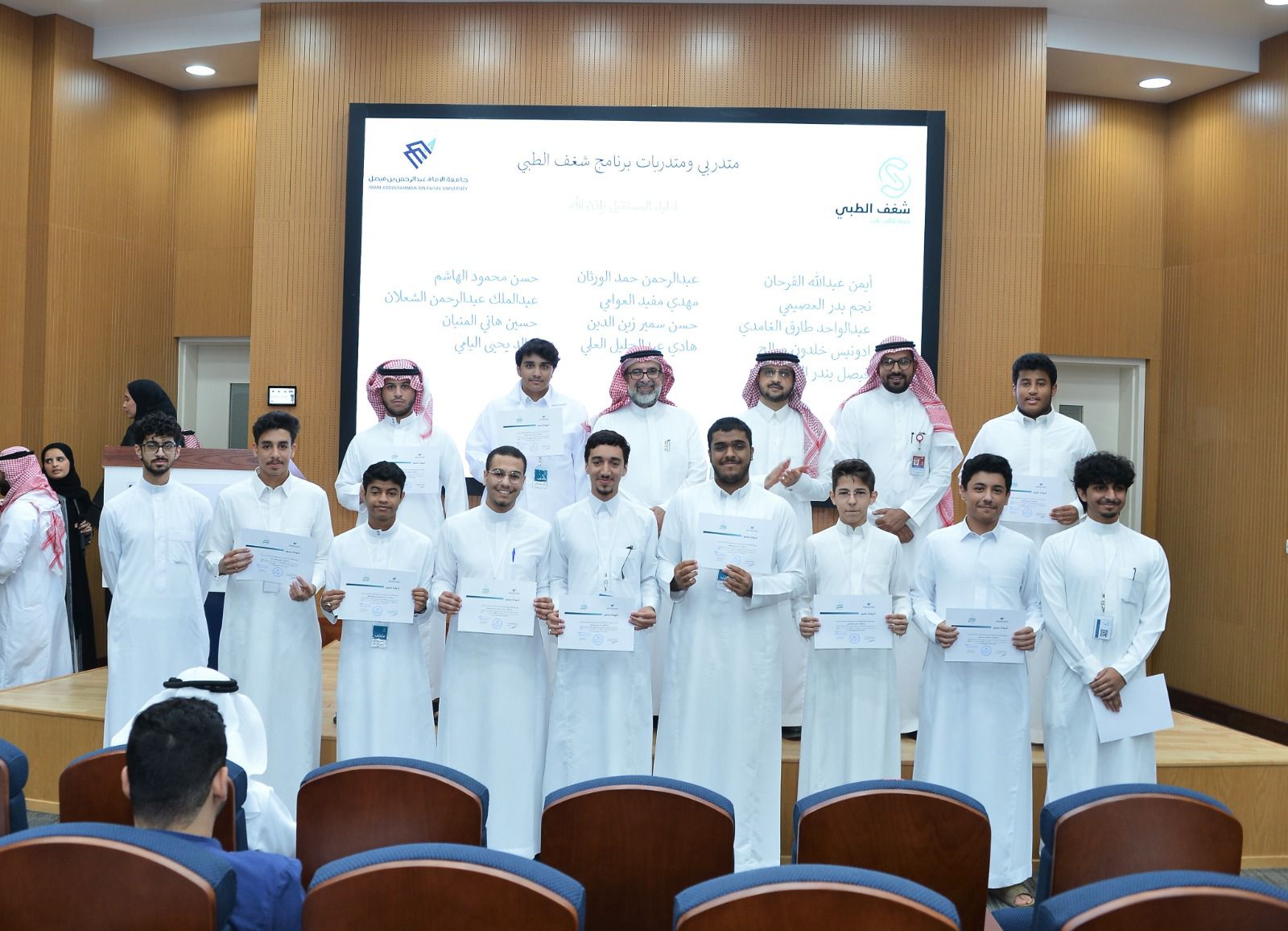 اختتم اليوم الخميس برنامج «شغف الطبي » في كلية الطب بجامعة الإمام عبد الرحمن بن فيصل ، والذي تنظمه الكلية بالتعاون مع مركز التعليم المستمر في الجامعة ، بحضور نائب الرئيس للشؤون الأكاديمية د.غازي بن عبدالرحمن العتيبي و عميد كلية الطب الدكتور بسام عواري و وكيل كلية الطب للشؤون الاكاديمية " المشرف على البرنامج " الدكتور محمد مددين و عميدة معهد الابتكار و ريادة الأعمال الدكتورة خلود الغامدي و مديرة مركز التعليم المستمر الدكتورة جواهر الغامدي ومدير عام المركز الجامعي للاتصال والإعلام الدكتور طفيل اليوسف.