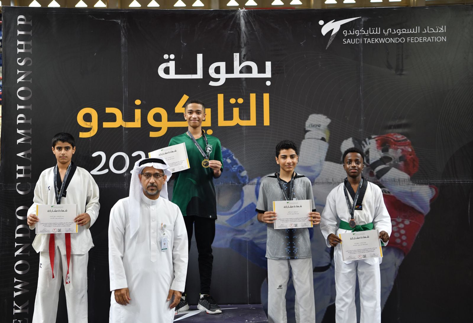 أقام الاتحاد السعودي للتايكوندو منافسات بطولة المملكة المفتوحة للهيئات والأكاديميات لدرجة الناشئين بمشاركة (18) هيئة وأكاديمية، على صالة الأمير نايف الرياضية بالقطيف ، حيث حقق كأس البطولة أكاديمية الجوهرة وحلت أكاديمية الأبطال الدوليين في المركز الثاني وجاء مركز فايت كلوب ومركز فنون آسيا رابعاً ، شهدت البطولة مشاركة (23) حكم وحكمة من مختلف الدرجات بقيادة الدولي فايز السلولي ونائبه أحمد الحياني بجانب مقيّم الحكام الأولمبي غازي الغانم، وأدار المسابقات رئيس لجنة المسابقات أمين آل وحيد الذي وجّه شكره لمكتب وزارة الرياضة بمحافظة القطيف ممثلاً بمندوبي المكتب زهير المرزوق وزهير أبوالرحي ولإدارة مدينة الأمير نايف الرياضية بالقطيف على جهودهم وتعاونهم في تنظيم البطولة موضحاً أن اختيار القطيف ضمن استراتيجية الاتحاد السعودي للتايكوندو لنشر اللعبة وتلبية لرغبة الأهالي في حضور المنافسات لأبنائهم وتشجيعهم، من جانبه أوضح رئيس اللجنة الفنية الكابتن ثامر السعران أن هذا الحراك الشمرلي للعبة ينطلق من توجيهات رئيس الاتحاد العميد شداد العمري، الذي رسم مع أعضاء مجلس الإدارة ملامح عديدة تختلف كل موسم عن سابقه في سبيل نشر اللعبه ووصولها لأكبر شريحة من جميع الفئات.