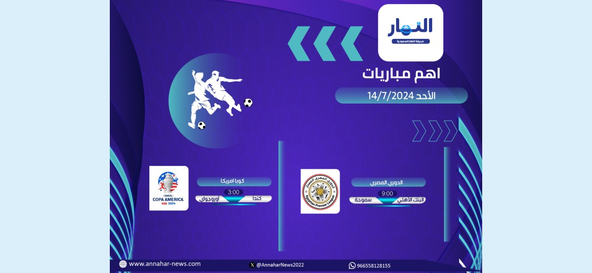 يحرص عشاق ومحبو كرة القدم على معرفة جدول مواعيد مباريات يوم غدًا الأحد 14 / 7 / 2024م، في بطولة الدوري المصري وكوبا أمريكا ، حيث تشهد كوبا أمريكا مباراة نارية في تحديد المركز الثالث.