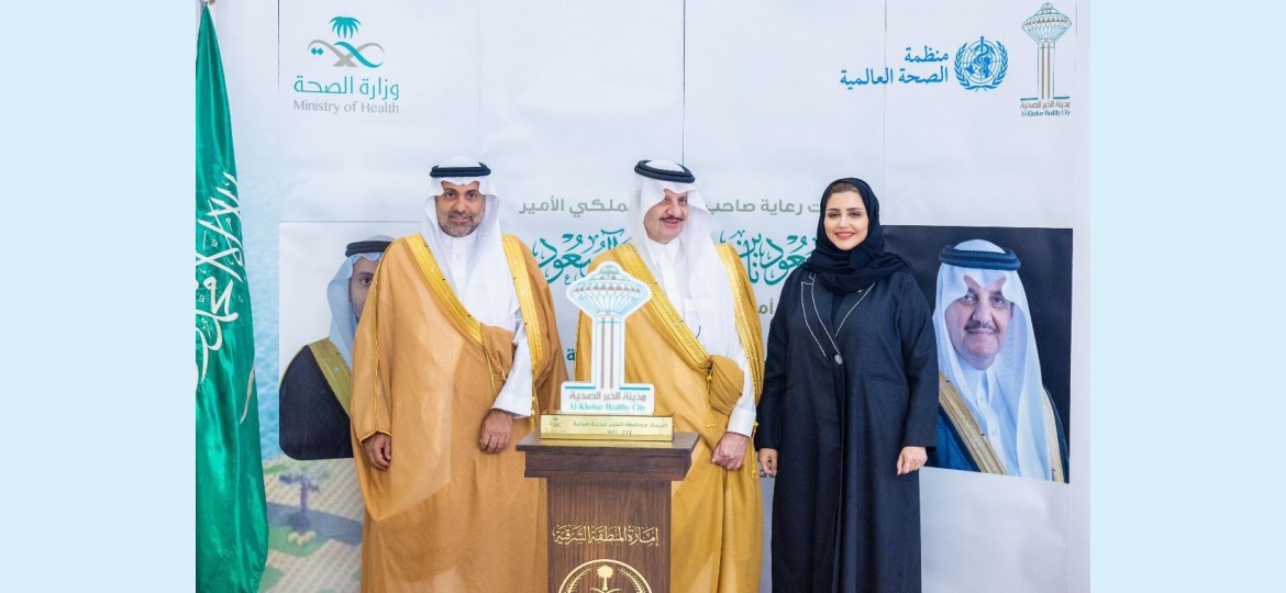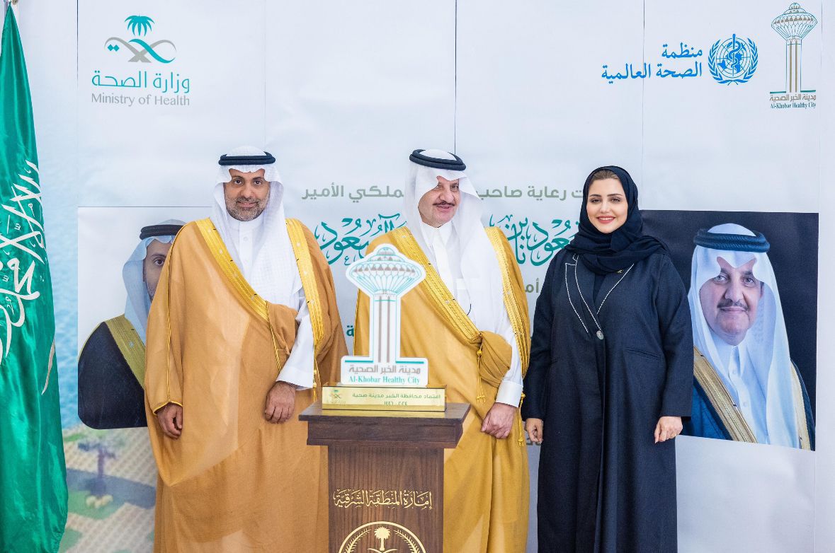 وتسلم سمو أمير المنطقة الشرقية من معالي وزير الصحة شهادة اعتماد محافظة الخبر كمدينة صحية من منظمة الصحة العالمية، بالإضافة إلى تكريم الداعمين للقطاع الصحي في المنطقة الشرقية.