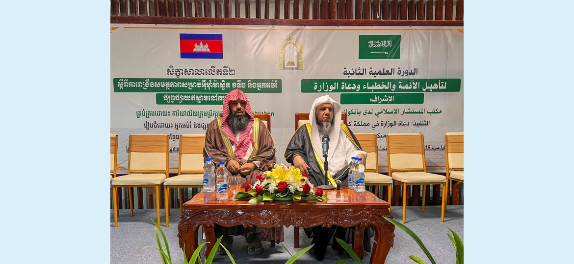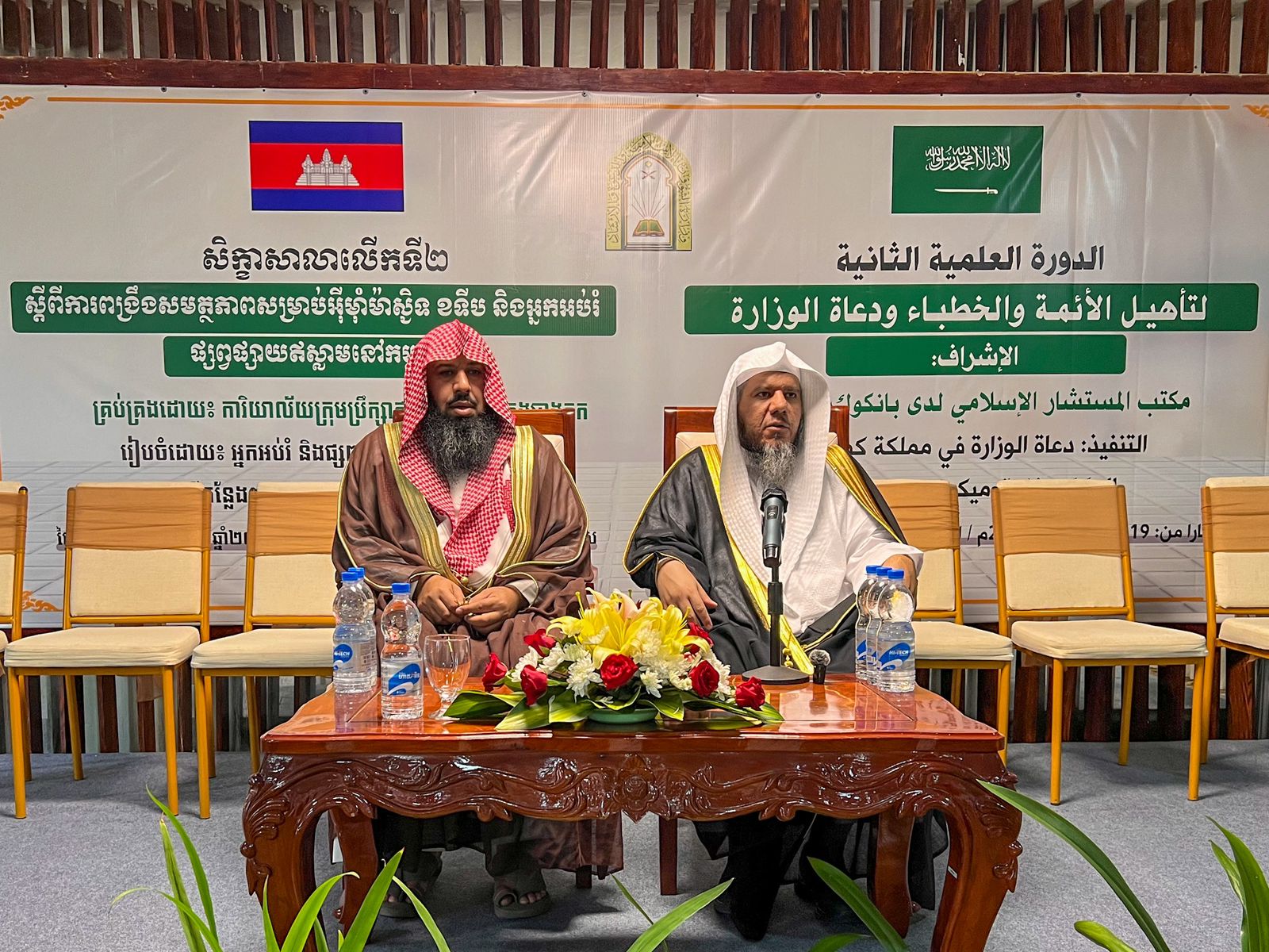 أقامت وزارة الشؤون الإسلامية والدعوة والإرشاد اليوم، الدورة العلمية الثانية لتأهيل الأئمة والخطباء في مملكة كمبوديا بالعاصمة بنوم بنه، بحضور ومشاركة عدد من الأئمة والخطباء والدعاة، حيث تستمر مدة ثلاث أيام، في إطار مذكرة التفاهم الموقعة بين البلدين في مجالات التعاون المشترك بالشؤون الإسلامية.