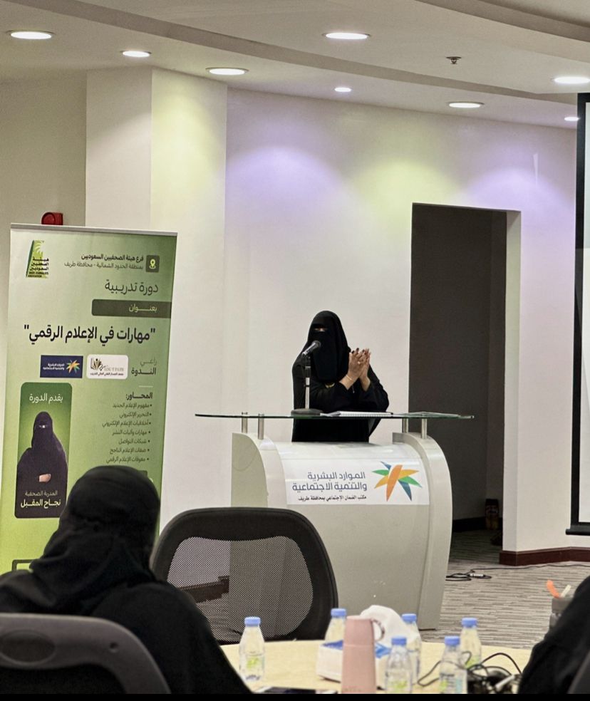 نظم فرع هيئة الصحفيين بمنطقة الحدود الشمالية مساء الخميس، دورة تدريبية بعنوان "مهارات في الإعلام الرقمي "وذلك في قاعة الضمان الاجتماعي بمحافظة طريف.