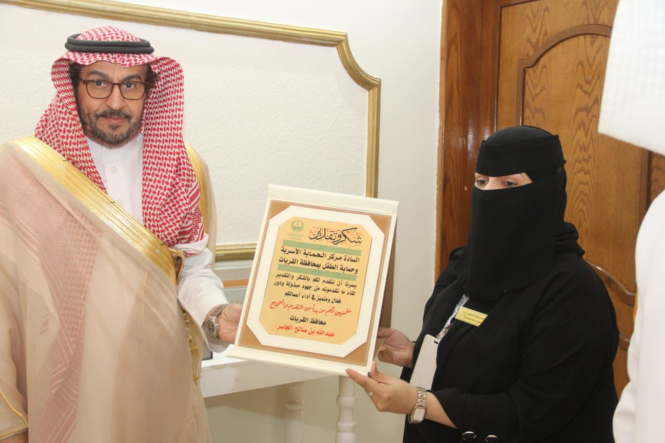 افتتح سعادة محافظ القريات الاستاذ عبدالله بن صالح الجاسر، صباح اليوم مقر مركز الحماية الأسرية بالقريات التابع لجمعية توافق للإصلاح الأسري والمختص بحماية الأسرة والطفل.