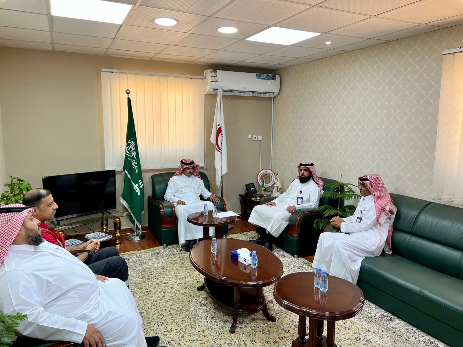 وفي نهاية اللقاء زار مدير عام الشركة غرفة عمليات الهيئة بالمنطقة مطلعاً على سير العمل حيث قدم له مساعد مدير عام الفرع للشؤون الفنية أ. نزال السليمان شرحاً لآلية إستقبال وترحيل البلاغات وطريقة متابعتها حتى وصول الحالات التي يتم إسعافها إلى الطوارئ.
