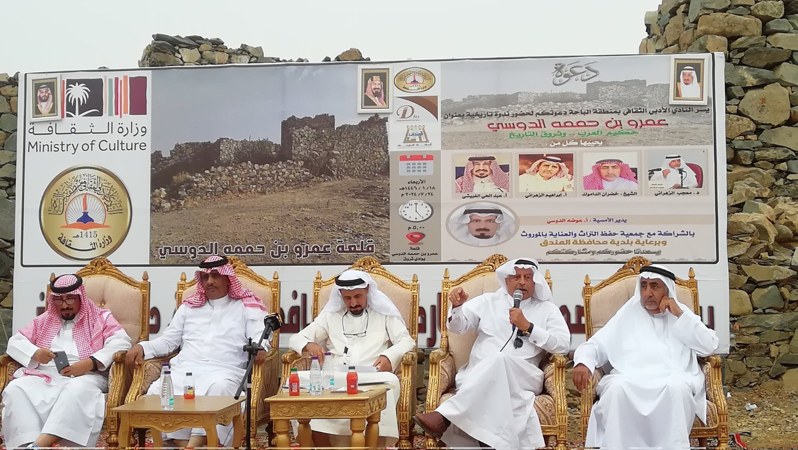الندوة أقيمت بجوار قلعة عمرو بن حممة الدوسي، في وادي ثروق التاريخي بدوس، مساء الأربعاء ١٨-١-١٤٤٦ هـ ٢٤/٧/٢٠٢٤م، وانطلقت عند الساعة السادسة مساءً.