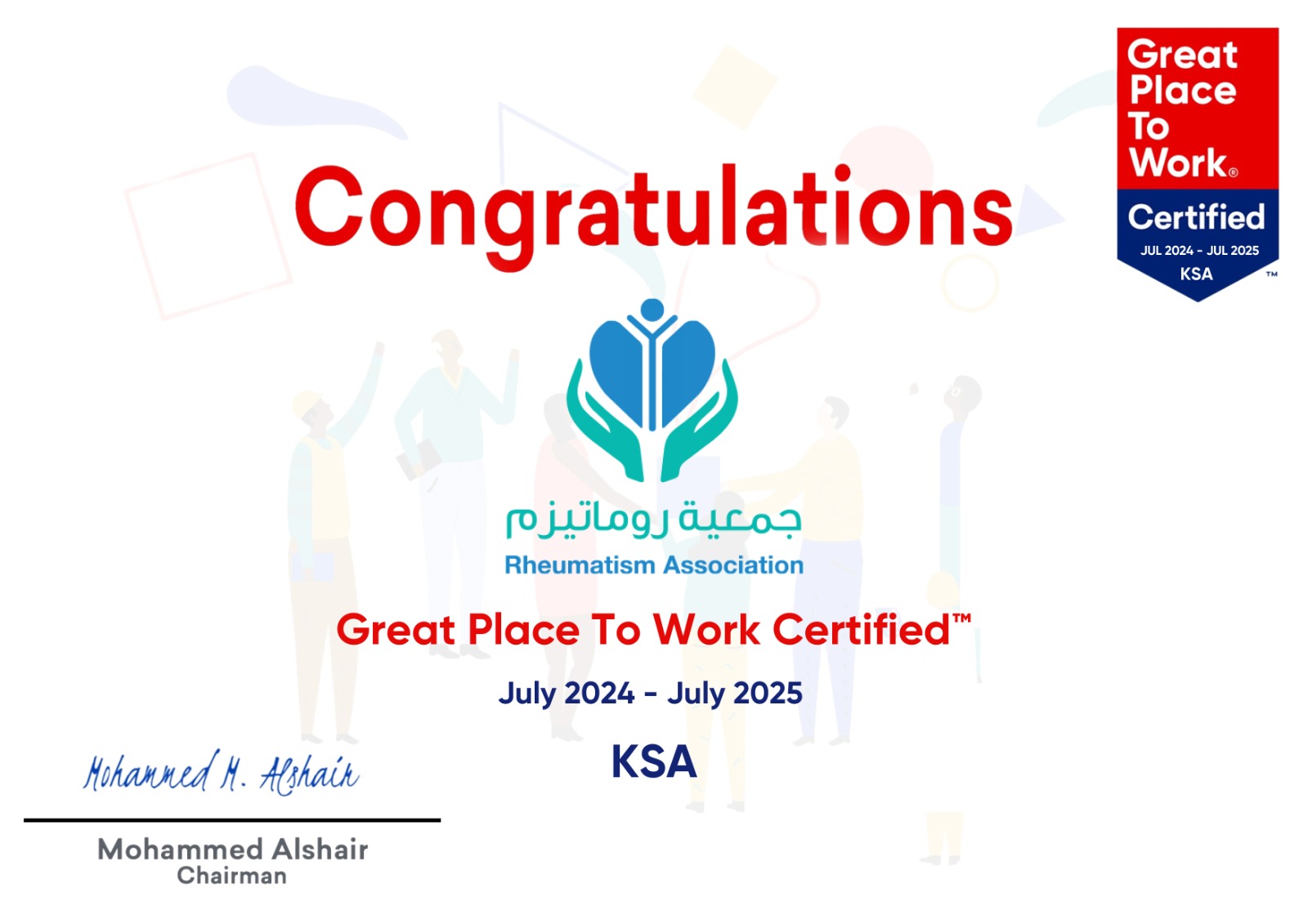 حصلت الجمعية الخيرية لرعاية مرضى الروماتيزم “روماتيزم” على شهادة معيار أفضل بيئة عمل من الهيئة العالمية لثقافة بيئة العمل المعتمدة دولياً كأول جمعية على مستوى المملكة.