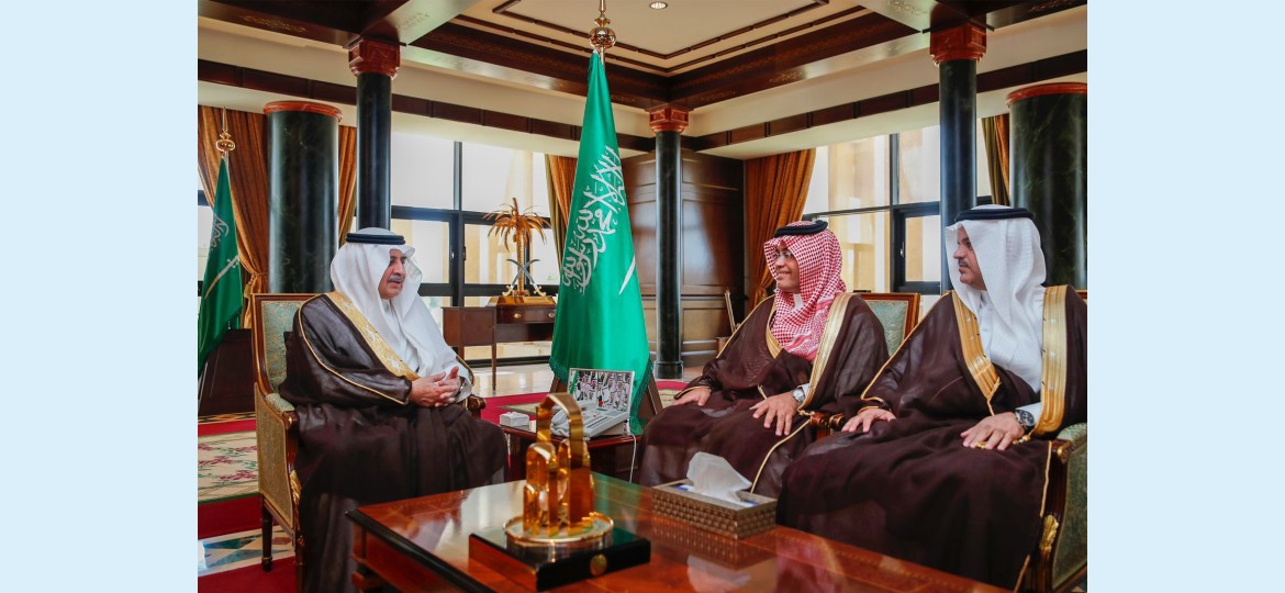 وفي بداية الاستقبال رحب سموه بهما ، مثنياً على الجهود التي بذلها معالي الدكتور الذيابي خلال فترة عمله رئيساً للجامعة وما وصلت إليه الجامعة من تميز أكاديمي .