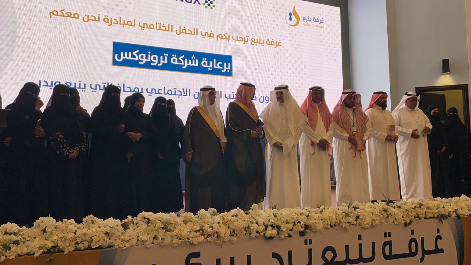رعى محافظ ينبع الاستاذ سعد السحيمي الحفل الختامي لمبادرة " نحن معكم " والتي نظمتها الغرفة التجارية بينبع مساء اليوم الاثنين ١٤٤٦/١/٢٢هـ بالتعاون مع شركة ترونوكس السعودية للتصنيع ومكتب الضمان الاجتماعي بمحافظتي ينبع وبدر حيث حضر الحفل سعادة رئيس الغرفة الأستاذ أحمد الشغدلي وأمين عام الغرفة أ. ماجد الرفاعي ومدراء الإدارات كما حضر الحفل سعادة رئيس شرطة ينبع العميد عبدالرحمن السحيمي ومدير شعبة الأمن الوقائي العقيد فواز الأحمدي كذلك مدير مكتب الضمان الاجتماعي ببدر وأيضاً رئيس شركة ترونوكس المهندس اياد حجار وعضو مجلس الشركة الاستاذ فوزي الشريف ومدير عام الخدمات المساندة بالهيئة الملكية بينبع الأستاذ محمد باجرفان ومدير الخدمات الاجتماعية الأستاذ غازي العتيبي ،