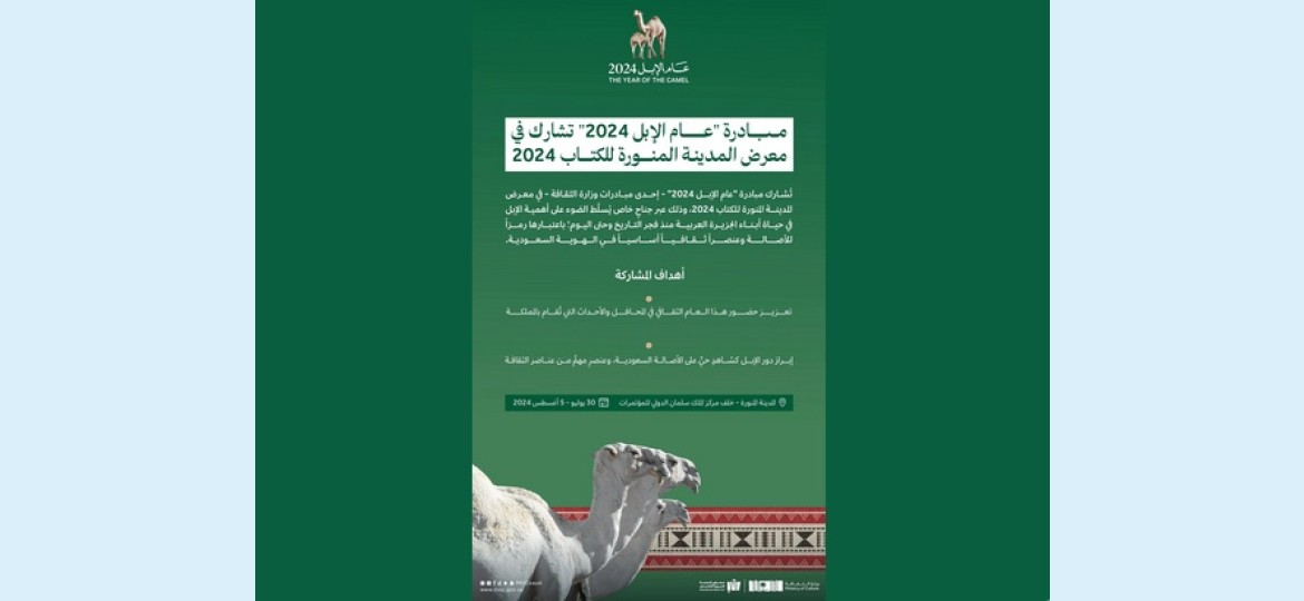 وتأتي مشاركة مبادرة "عام الإبل 2024" في معرض المدينة المنورة للكتاب؛ بهدف تعزيز حضور هذا العام الثقافي المميز في المحافل والأحداث التي تُقام بالمملكة، وذلك في إطار أنشطة وبرامج المبادرة التي أطلقت مطلع هذا العام لتحتفي بالإبل بوصفها رمزاً ثقافياً أصيلاً في المملكة، وإبراز دورها بصفتها شاهداً حيّاً على الأصالة السعودية، وعنصراً مهمّاً من عناصر الثقافة السعودية، ولتعكس ما يربط الإنسان السعودي بهذا المخلوق الذي يُعدّ أحد المعجزات الإلهية، ويبرز أثرها في حياته منذ سنواتٍ طويلة، وتأثيرَها في الزمن الحالي.