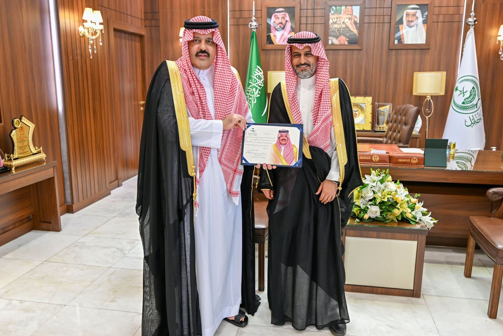 ونوّه سموه خلال الاستقبال بالدعم الكبير والاهتمام الذي توليه القيادة للقطاع الصحي، وبمتابعة معالي وزير الصحة، مشيراً إلى أهمية الدور الذي قامت به مديرية الشؤون الصحية بالمنطقة والتكامل مع تجمع حائل والقطاعات الأخرى بما يعود على حائل وأهلها وصحة المرضى بالفائدة، كما اطلع سمو أمير حائل على مستجدات العمل في صحة حائل وتحوّل المديرية إلى فرع لوزارة الصحة، التي ستقوم بدور الوزارة التنظيمي والإشرافي في المنطقة والمحافظات.