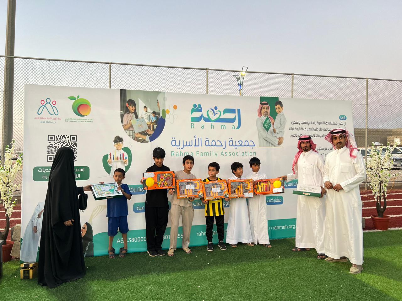 تشارك جمعية رحمة الأسرية في مهرجان الفاكهة بعدد من الأنشطة فيما يتوافق مع أهدافها، والتي تمثلت في التعريف عن الجمعية، ووضع ونشر ( QR ) مع رابط بالتعاون مع لجنة شؤون الأسرة بطبرجل الفرعية لرصد التحديات التي تواجه الأسرة لتشارك الجمعية فيما بعد لتضمينها لبرامجها، للحد من تلك التحديات فيما يخص اختصاصها وتوزيع بعض المطويات التي تحمل أهدافها ورؤيتها ورسالتها وكذلك التعريف عن برامجها.