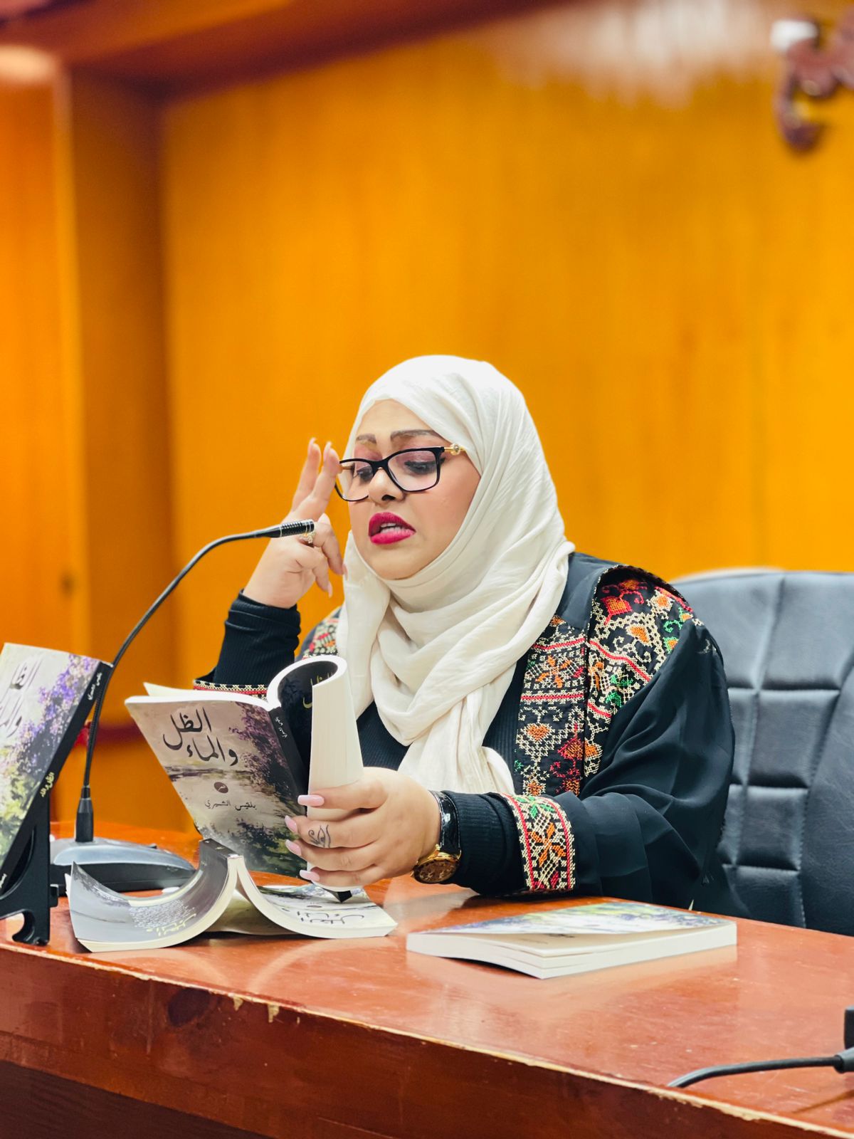 كذلك تحدثت الأستاذة رنا عماد مدير عام دار يسطرون للطباعة والنشر بالقول " كان هناك إهتمام مصري وعربي متزايد بهذه الشاعرة ويتضح ذلك من خلال الحضور لهذا الحفل والدليل علي ذلك اقبال العديد من الشعراء العرب وجمهور الشعر من جميع انحاء الوطن العربي من المقيمين والزائرين لمدينة القاهرة ولحرصهم على حضور حفل توقيع "ديوان الظل والماء" وأضافت بأن القراء العرب ينجذبون إلى الشعر بأنواعه المختلفة. وأشارت إلى أن الشعر استطاع تلبية احتياجات الجمهور الجديد ونجح في الاندماج مع التقنيات الحديثة وتطويعها."
