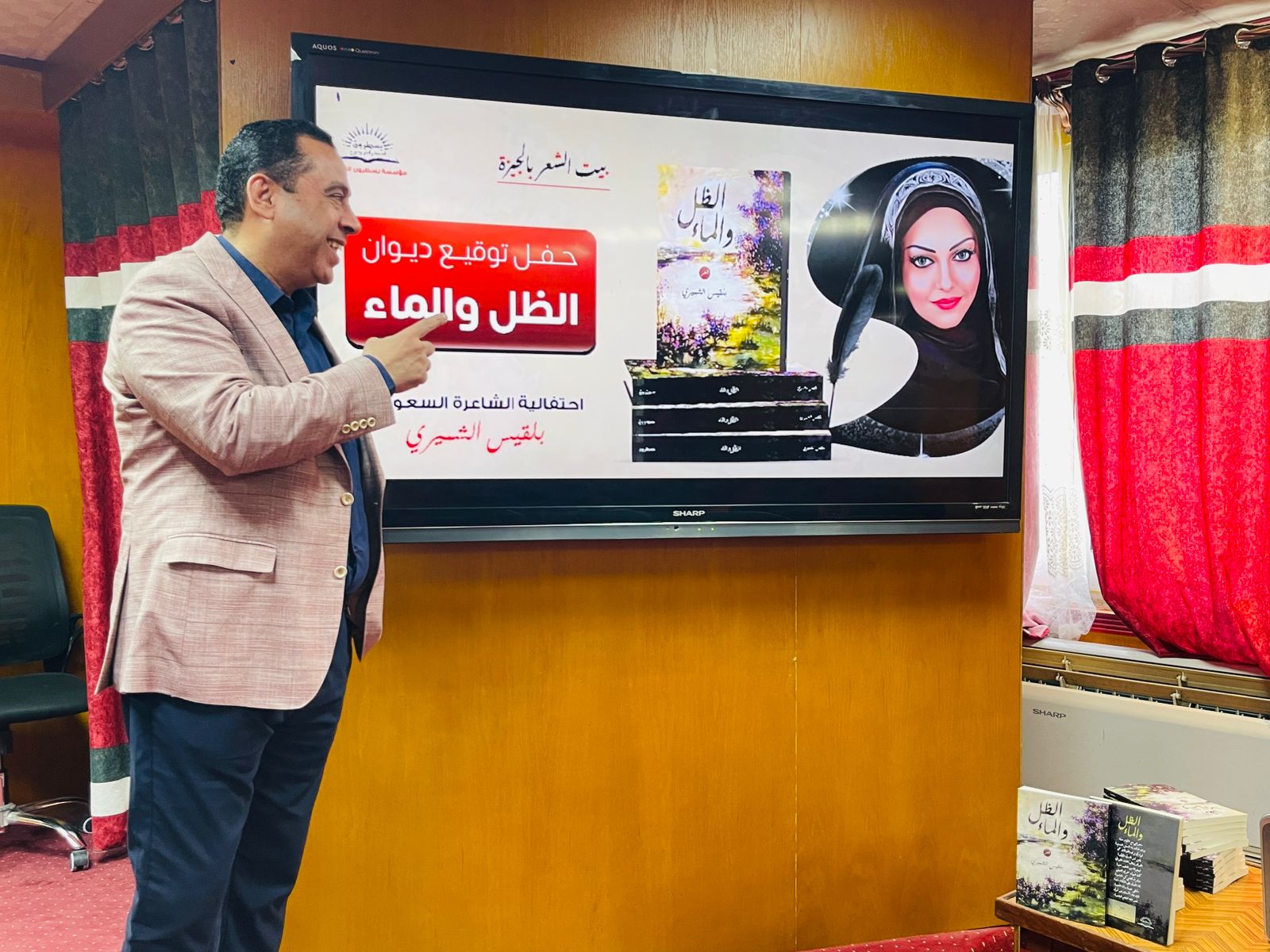 وتحدث بهذه المناسبة الشاعرين الكبيرين جبر البعداني ومحمود حسن عن أهمية مكانة الشعر السعودي وإن تجاربه الشعرية جديرة بالاحتفاء والدراسة وكان لحضور الشاعر البعداني اللافت حيث شارك في حفل توقيع الشاعرة بلقيس الشميري بقصيدة بعنوان "بهية" عن مصر وأكدّ على أنّ الشعراء السعوديين مغامرون ومجرّبون والمغامرة والتجريب هما عماد الاختلاف وذروة سنامه" بالمناسبة الشاعر البعداني هو من يدير بيت الشعر بالجيزة الذي يقيم فعاليات شعرية وأدبية أسبوعية يرتادها كبار الشعراء والمثقفين، ويسهم في تطوير الشعر والأدب وتشجيع الشعراء المبدعين.