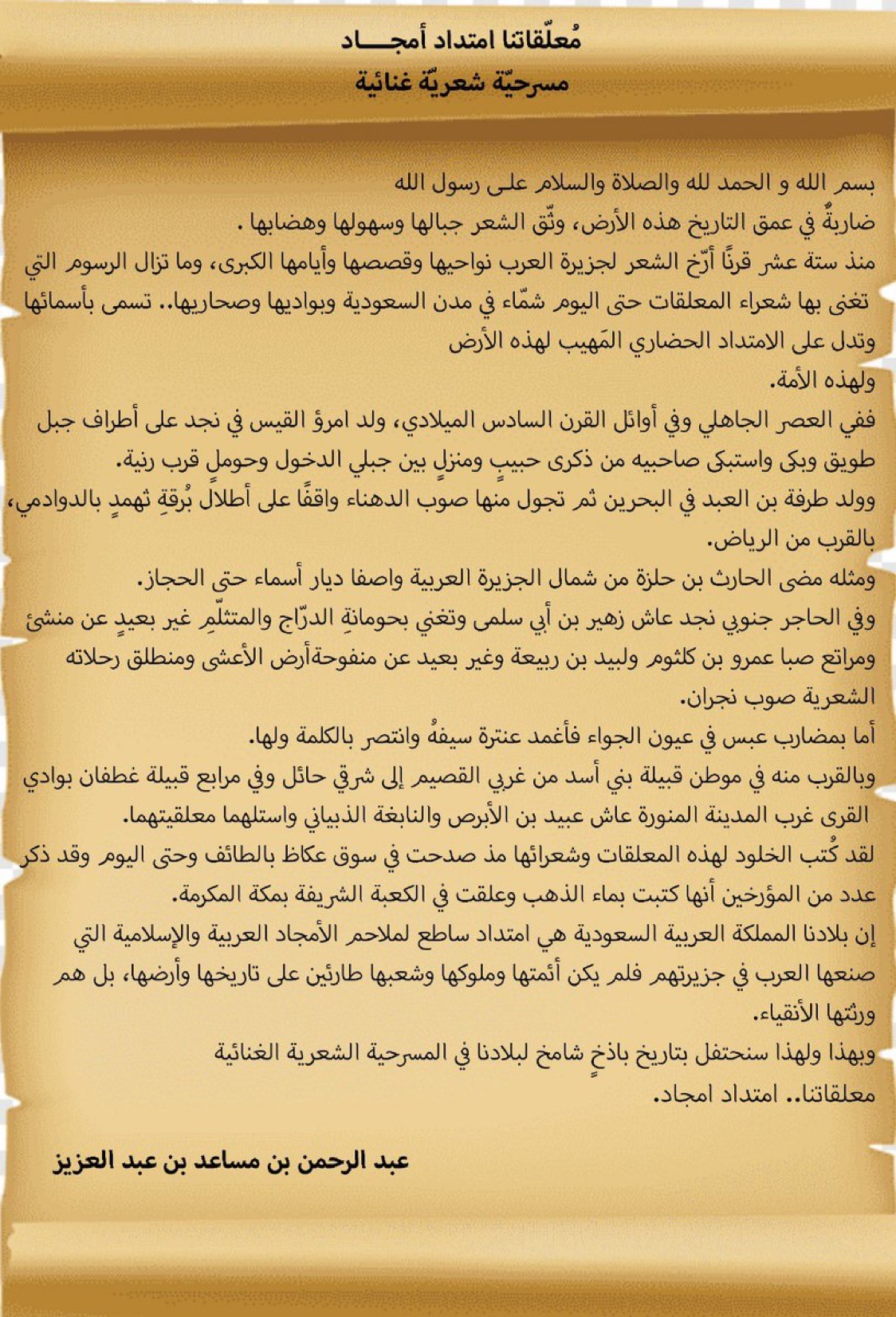 وأوضح الأمير عبدالرحمن لماذا كانت مسرحية #معلقاتنا_امتداد_أمجاد ؟