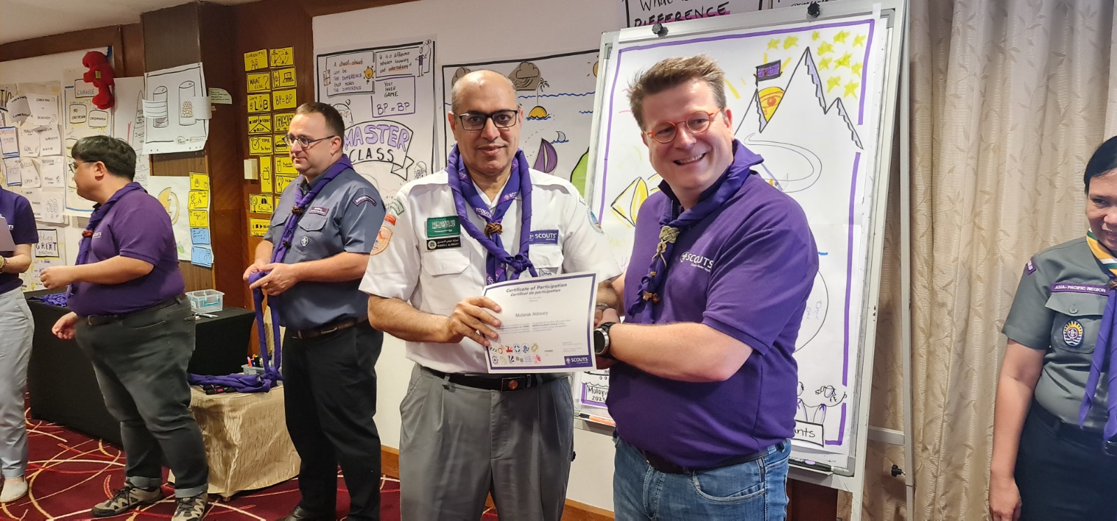 اختارت المنظمة الكشفية العالمية شخصيتان من جمعية الكشافة العربية السعودية لمهمة مستشارين للمنظمة العالمية لمدة ثلاثة سنوات بعد أن خضعا لبرنامج تدريبي عُقد مؤخراً في مدينة "بورت ديكسون" في مملكة ماليزيا الاتحادية.